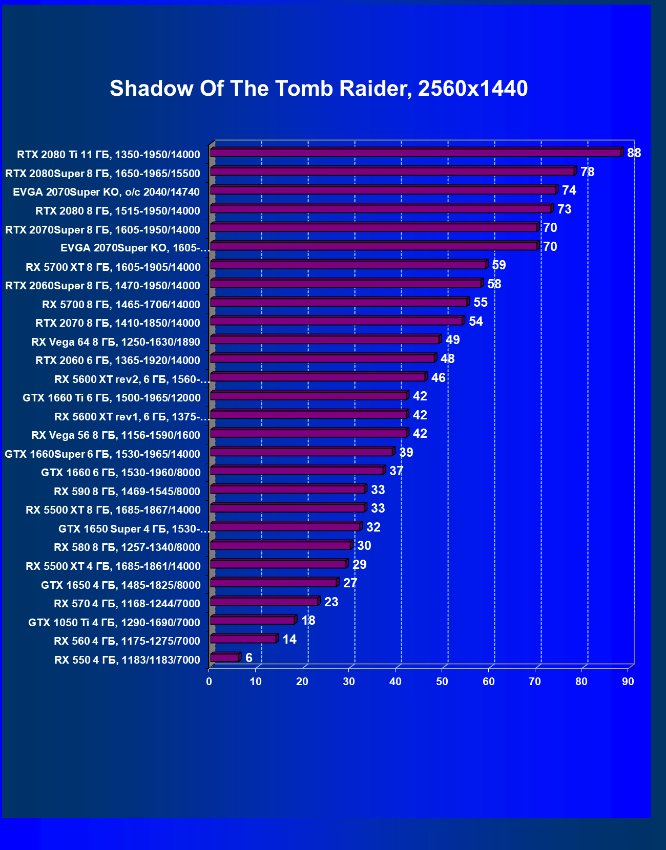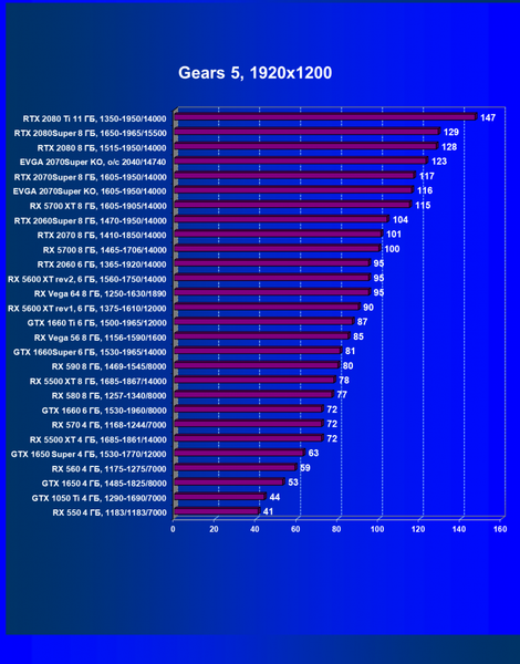 | 09 | RX 5700 XT 8 ГБ, 1605—1905/14000 | 1120 | 320 | 35 000 |