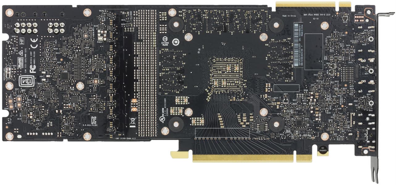 Карта Nvidia Founders Edition имеет 10-фазную схему питания (8 фаз на ядро, 2 фазы на микросхемы памяти), а у карты EVGA схема чуть-чуть проще: 7 фаз на GPU, хотя потенциально могло бы быть и 8 (просто печатная плата использована от RTX 2080, где использованы все 8 фаз).