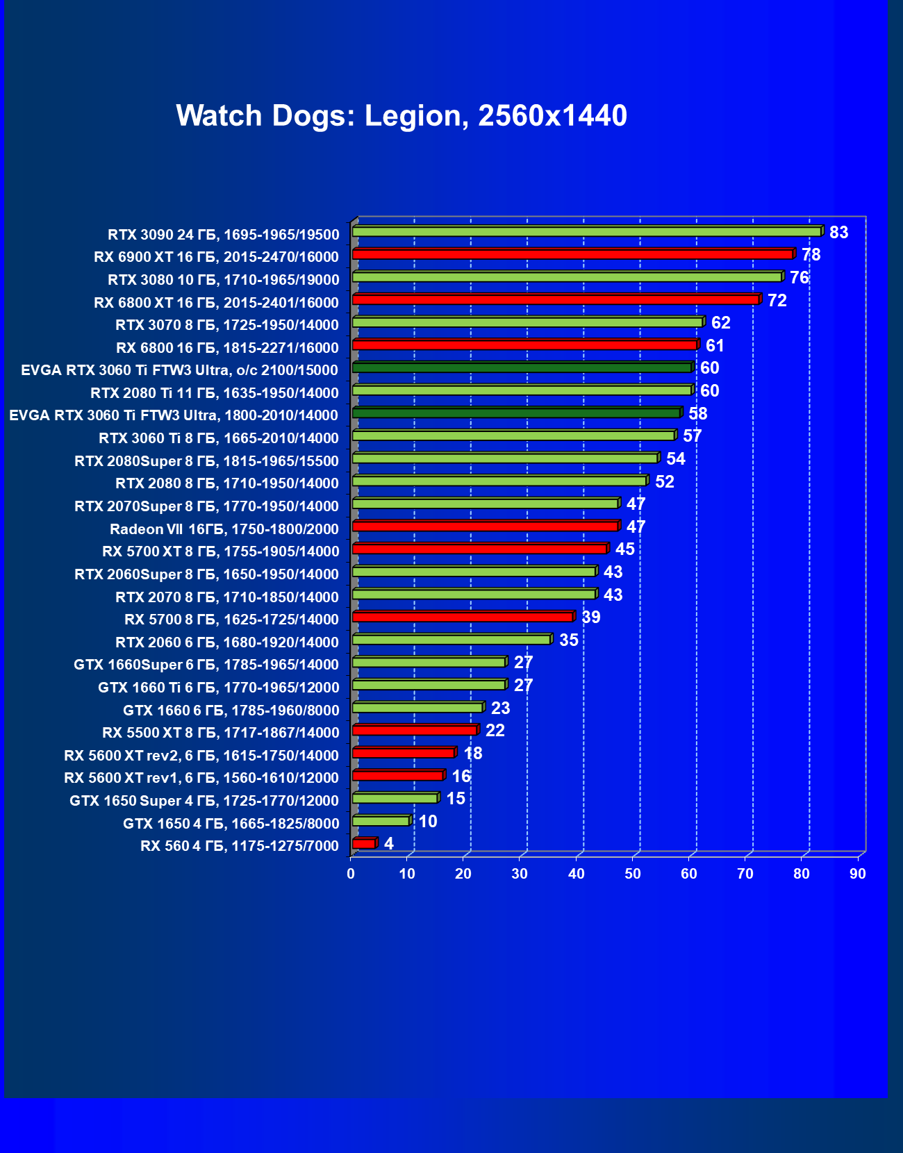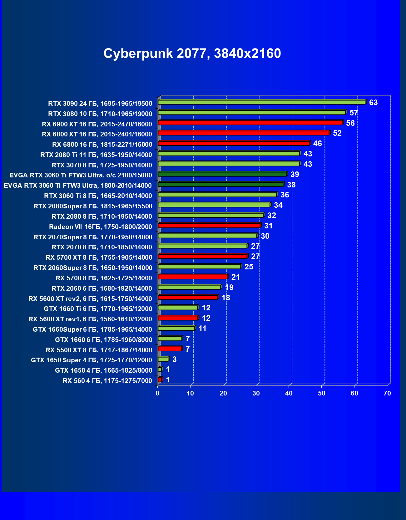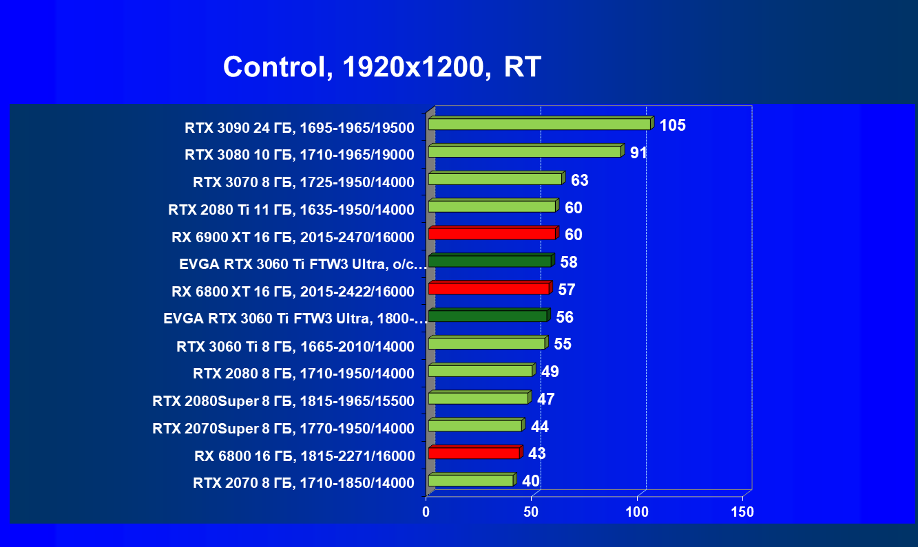 | 07 | EVGA RTX 3060 Ti FTW3 Ultra, разгон до 2100/15000 | 160 | 16 | 98 000 |