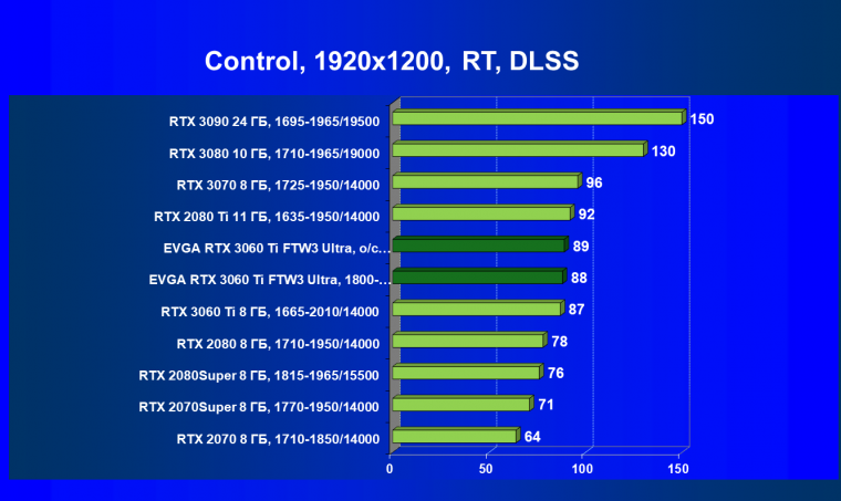 | 08 | EVGA RTX 3060 Ti FTW3 Ultra, разгон до 2100/15000 | 960 | 98 | 98 000 |