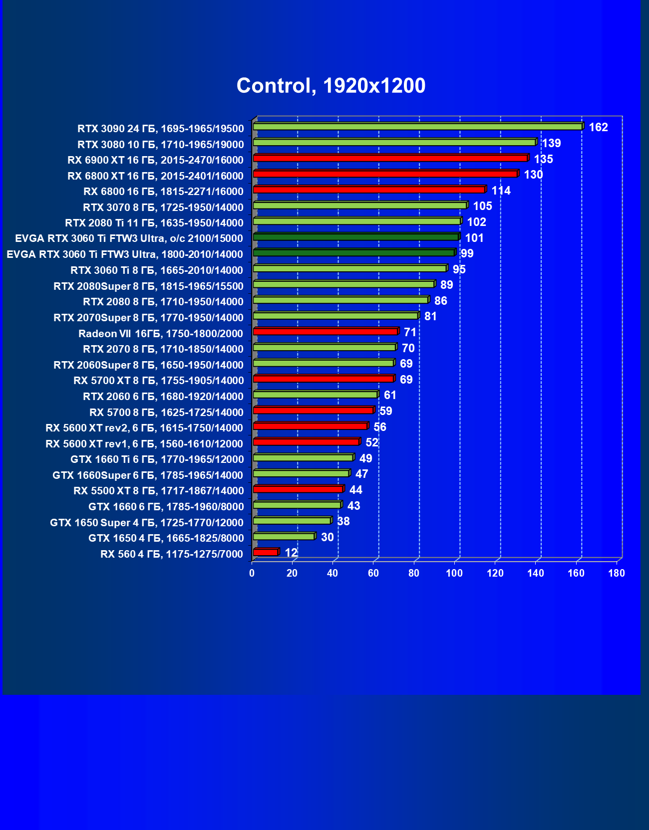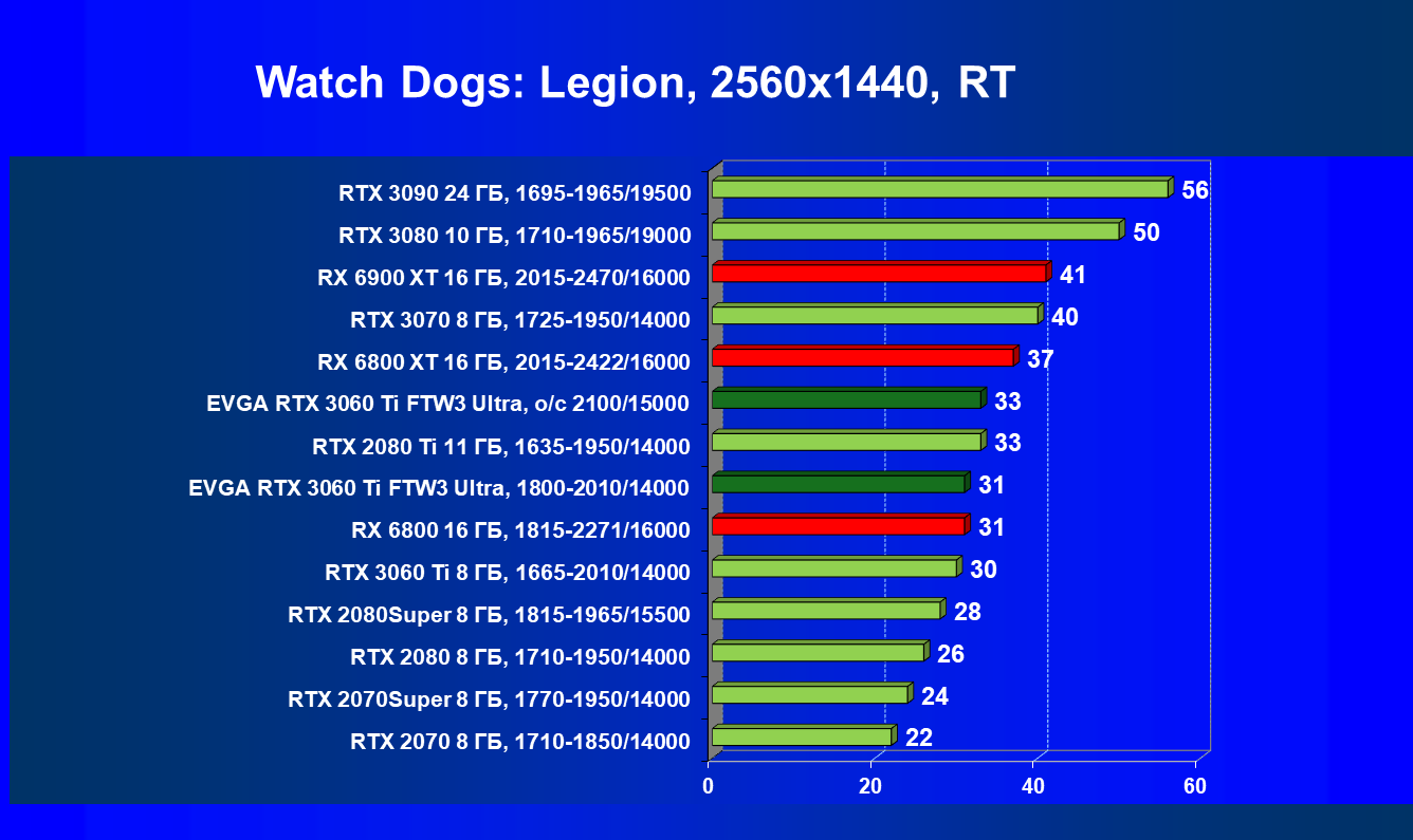 В целом соотношение сил среди видеокарт Nvidia осталось таким же, причем GeForce RTX 3060 Ti легко выиграл сражение даже у заведомо более дорогого Radeon RX 6800.