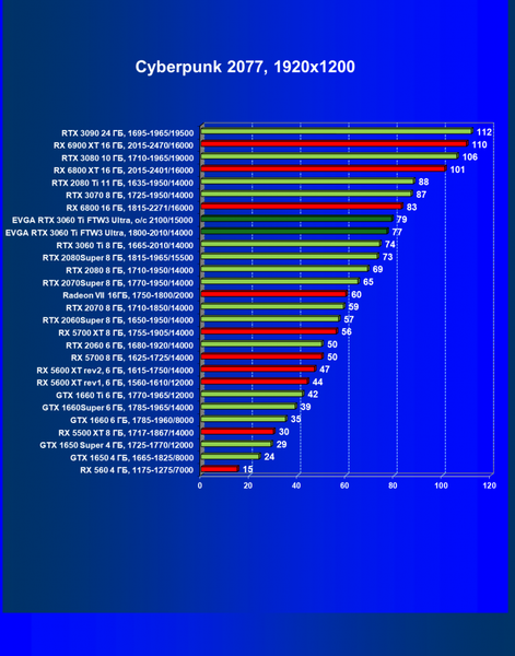 | 13 | RX 6800 16 ГБ, 1815—2271/16000 | 12 | 133 | 110 000 |