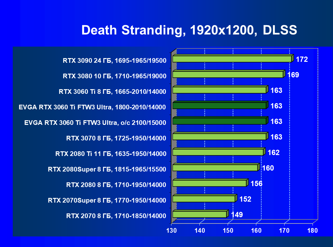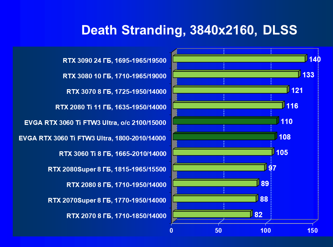 | 08 | EVGA RTX 3060 Ti FTW3 Ultra, 1800—2010/14000 | 150 | 15 | 98 000 |