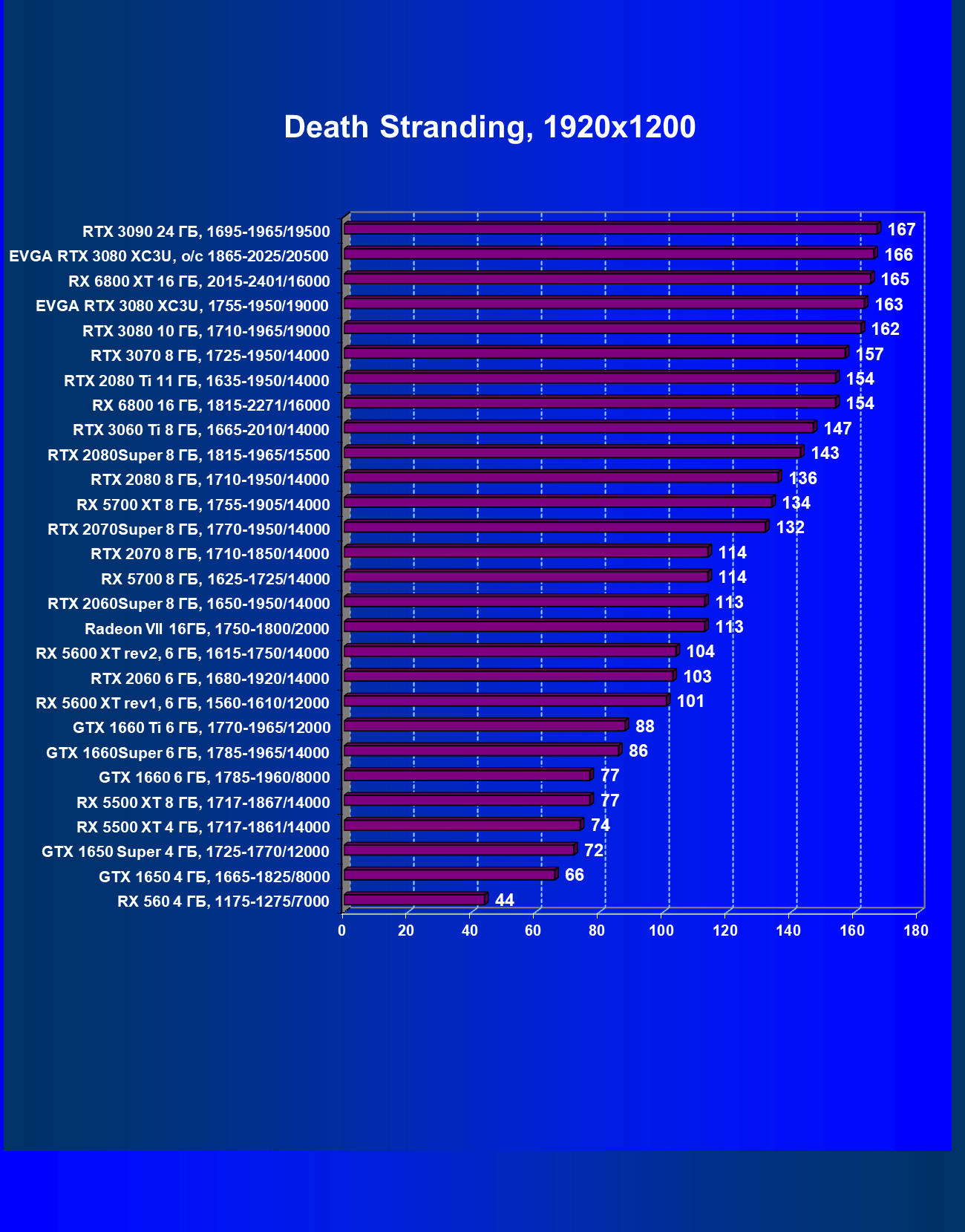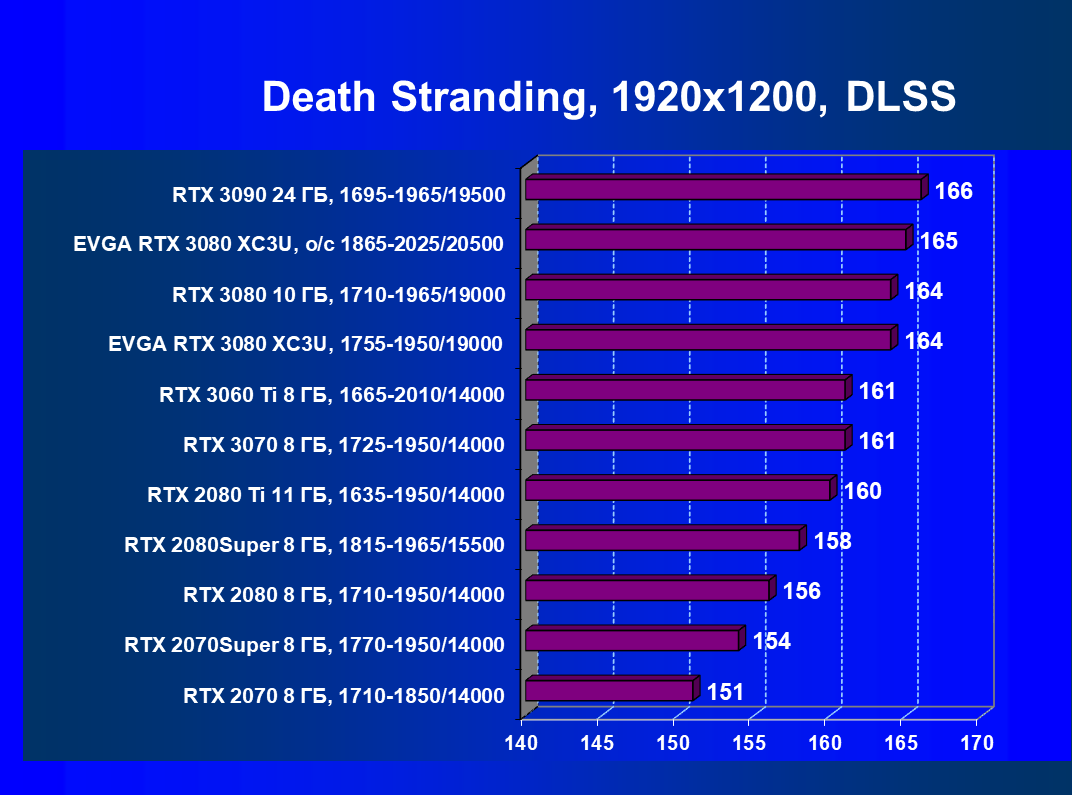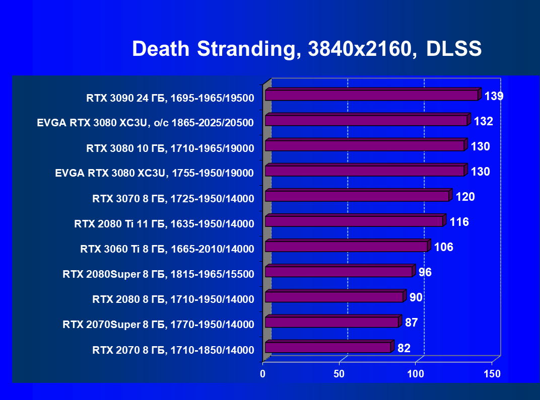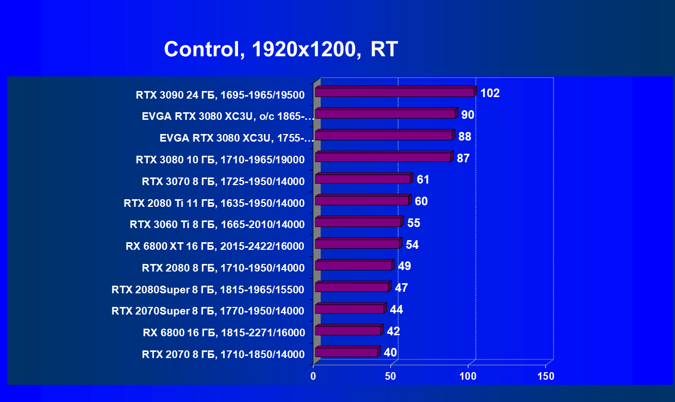 | 02 | EVGA RTX 3080 XC3U, разгон до 1865—2025/20500 | 1170 | 136 | 86 000 |