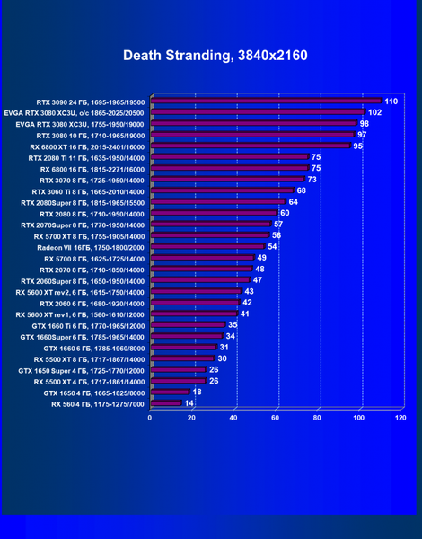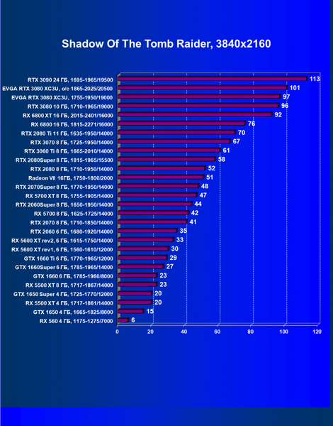 | 12 | RX 6800 XT 16 ГБ, 2015—2422/16000 | 17 | 140 | 82 000 |
