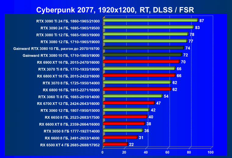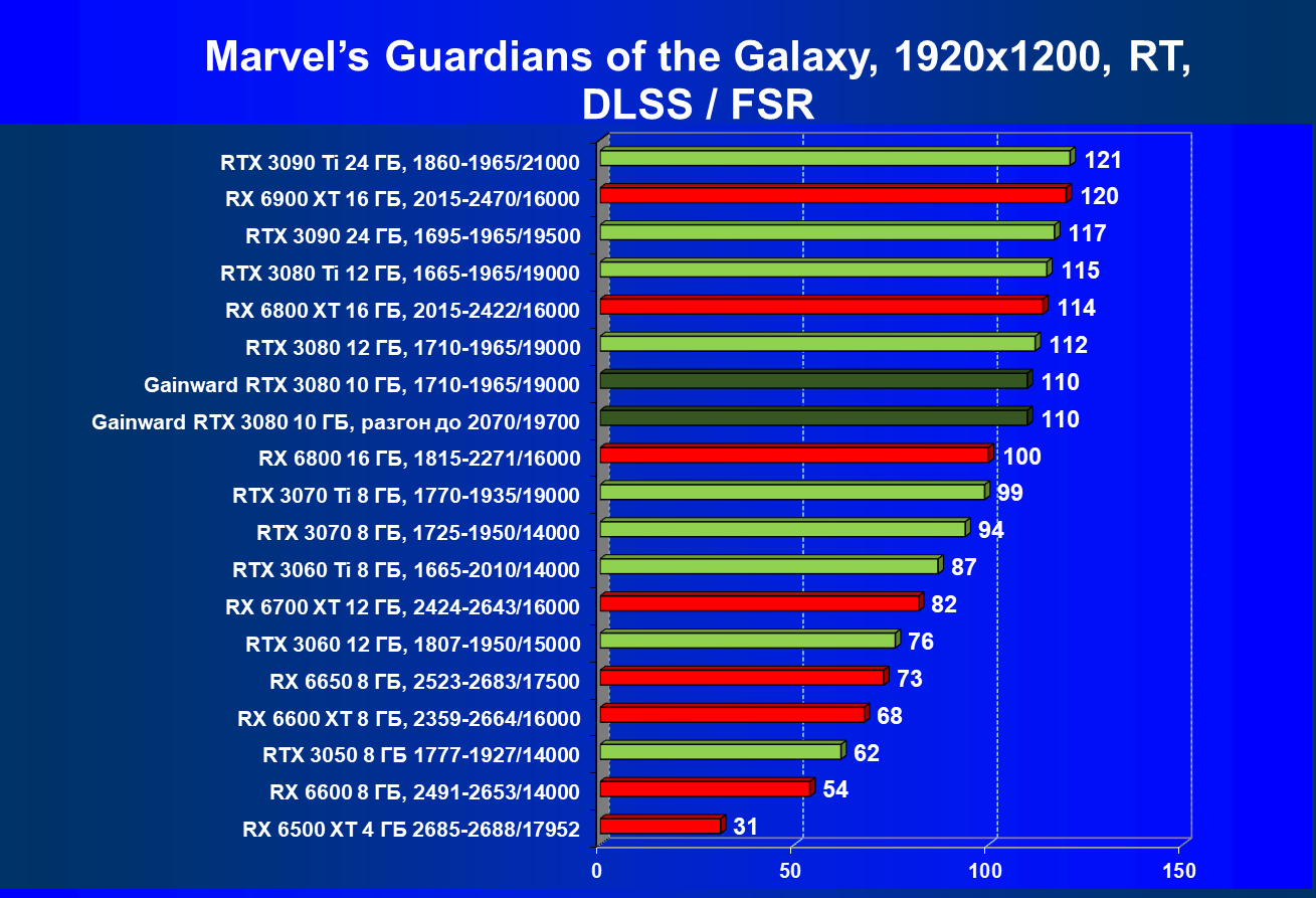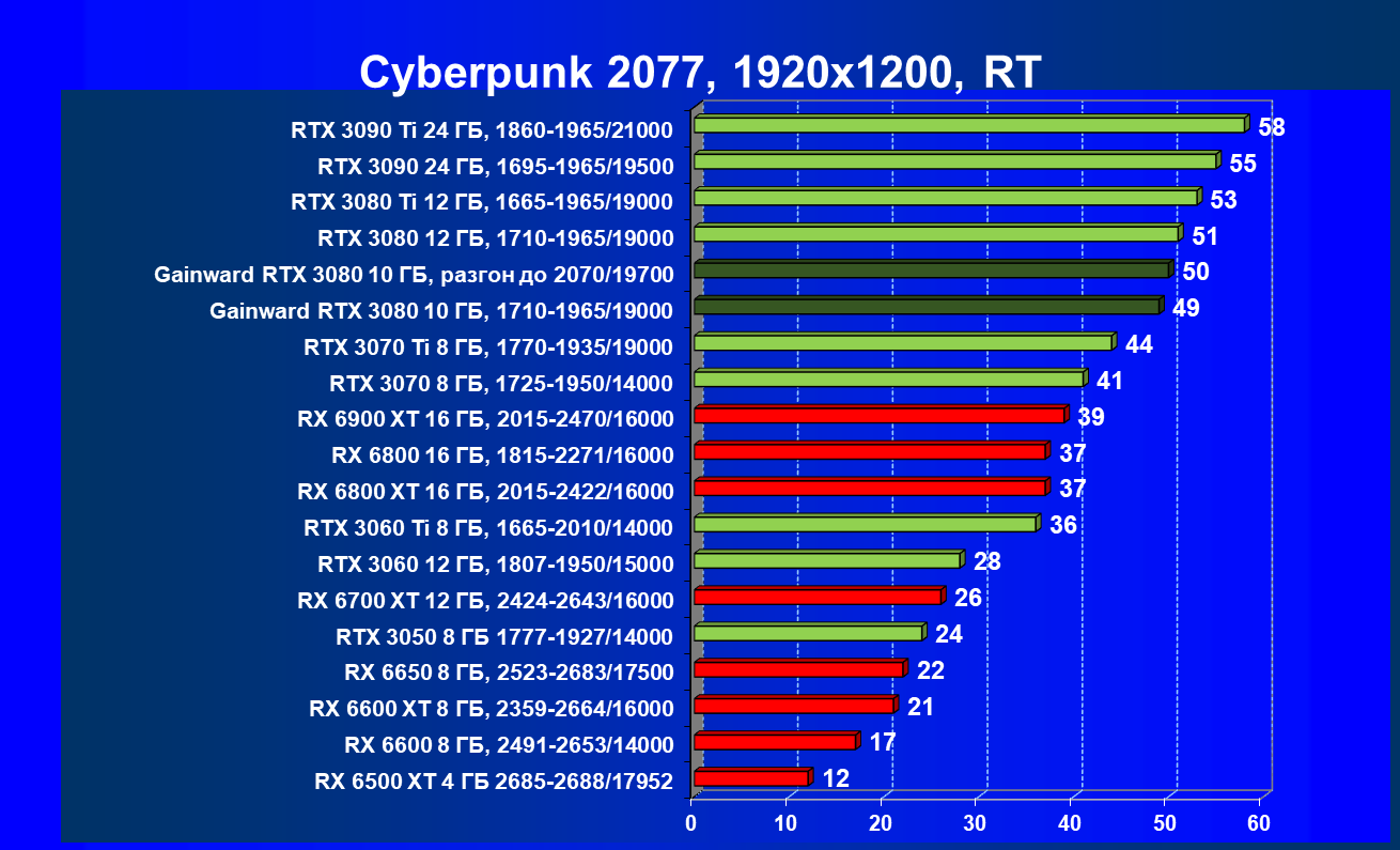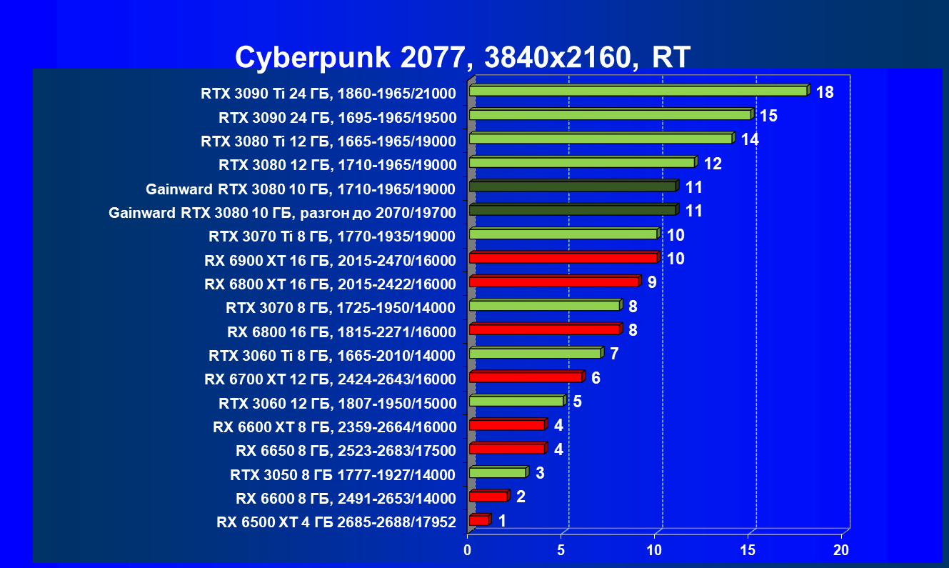 | 02 | Gainward RTX 3080 10 ГБ, 1710—1965/19000 | 148 | 873 | 59 000 |
