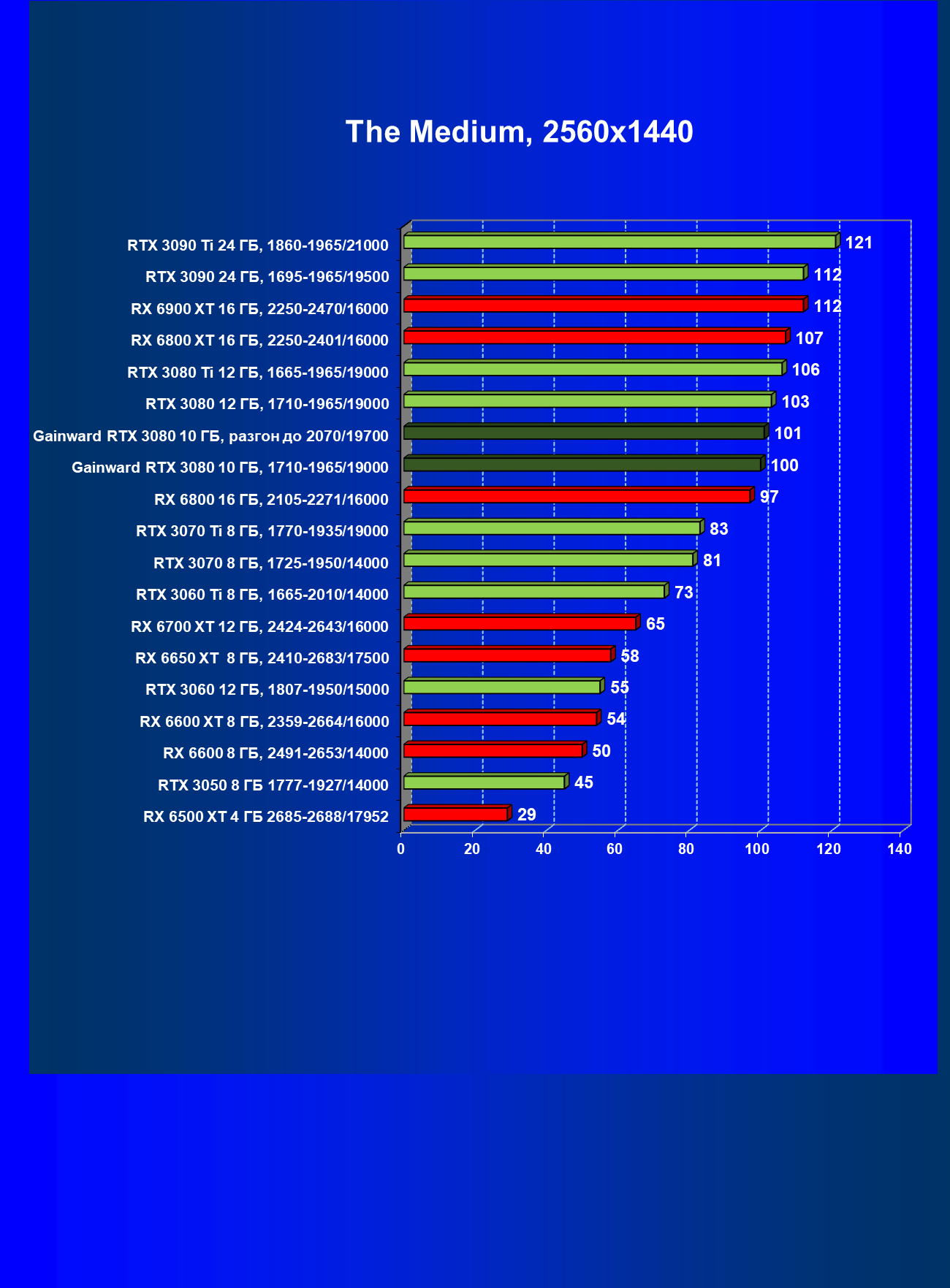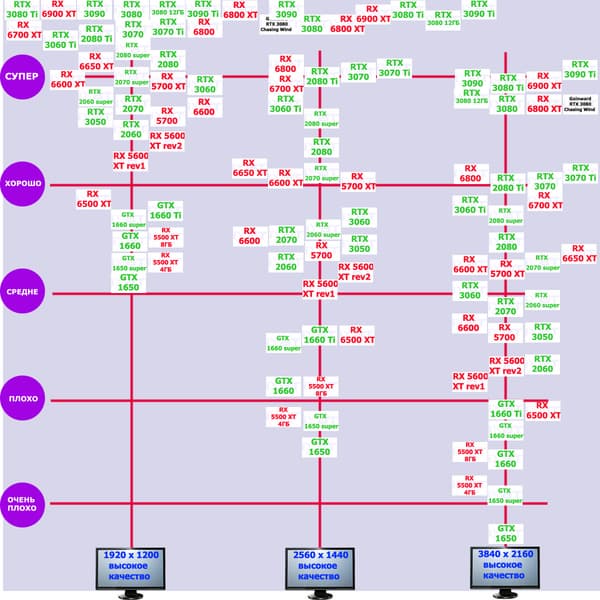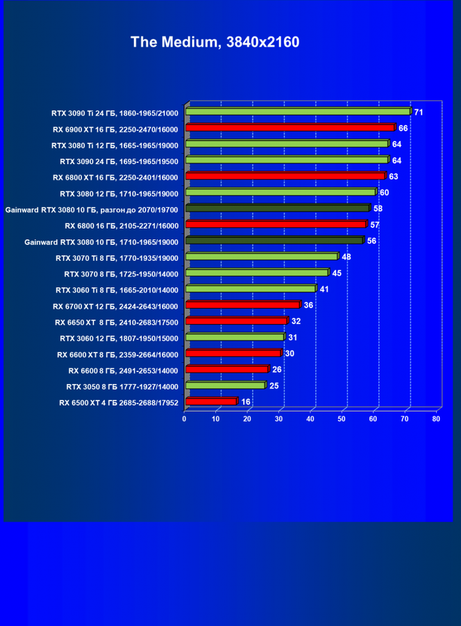 | 13 | RX 6900 XT 16 ГБ, 2250—2470/16000 | 66 | 619 | 94 000 |