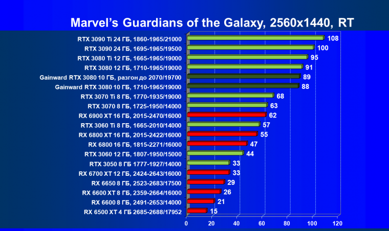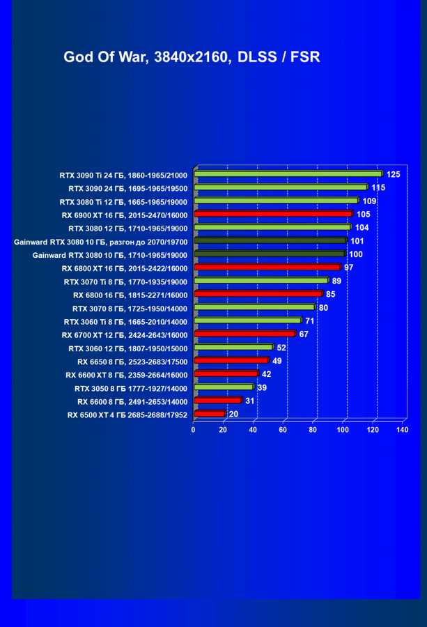 | 01 | Gainward RTX 3080 10 ГБ, разгон до 2070/19700 | 151 | 891 | 59 000 |