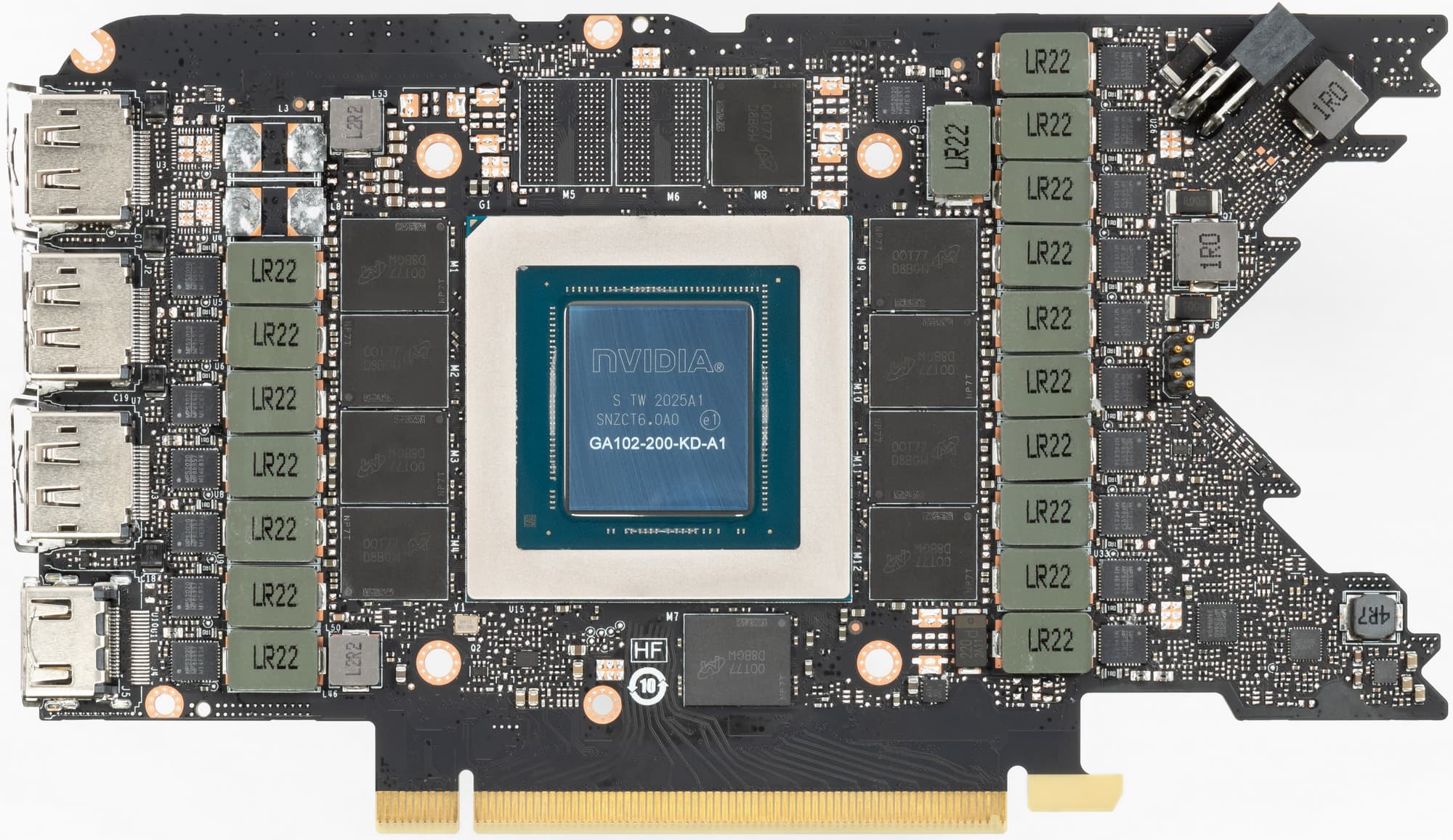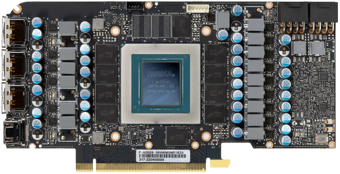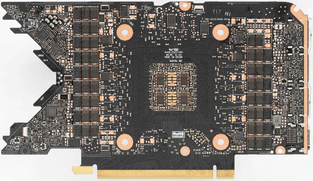 Как известно, для всей серии RTX 30 в Nvidia спроектировали минимум по два варианта дизайна PCB: для своих карт Founders Edition и для партнеров (платы без характерного выреза). Исключение лишь в случае с RTX 3090 Ti, где V-образный вырез имеется и на партнерских картах.