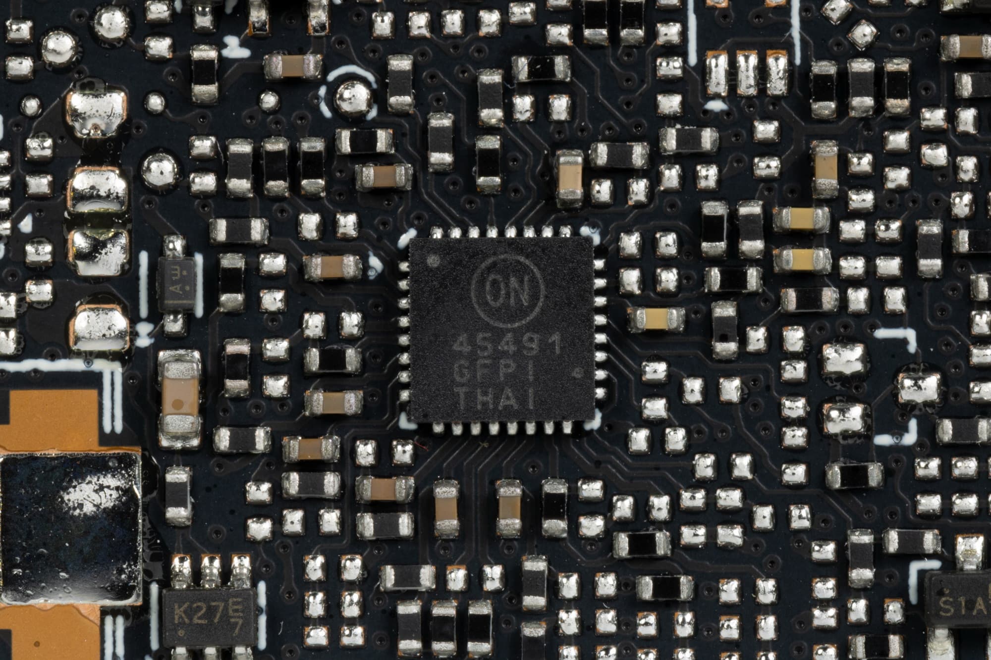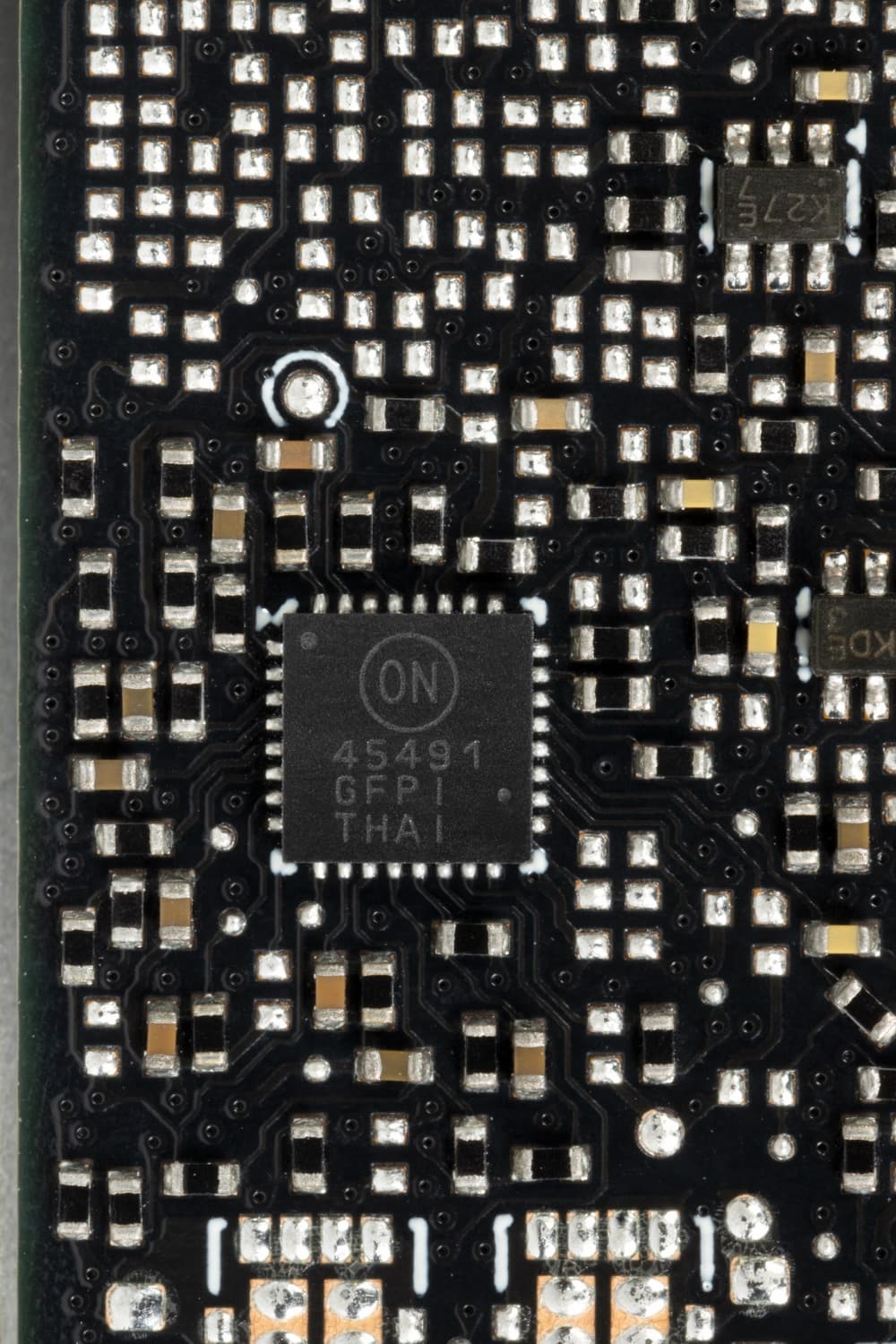 На обеих сторонах платы имеется по одному контроллеру NCP45491 (On Semiconductor), которые отвечают за мониторинг карты (отслеживание напряжений и температуры).