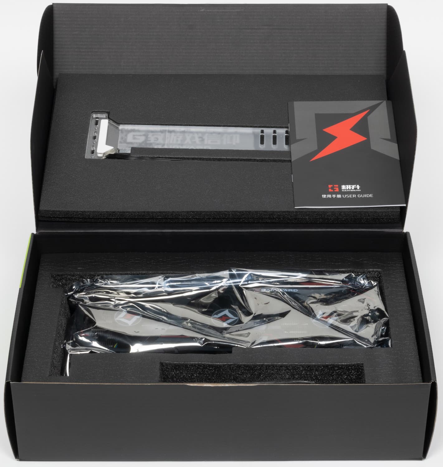 В комплект поставки входит краткое руководство пользователя, а также акриловый кронштейн-подставка под карту с RGB-подсветкой (12 В), плюс набор крепежа для монтажа данной подставки.