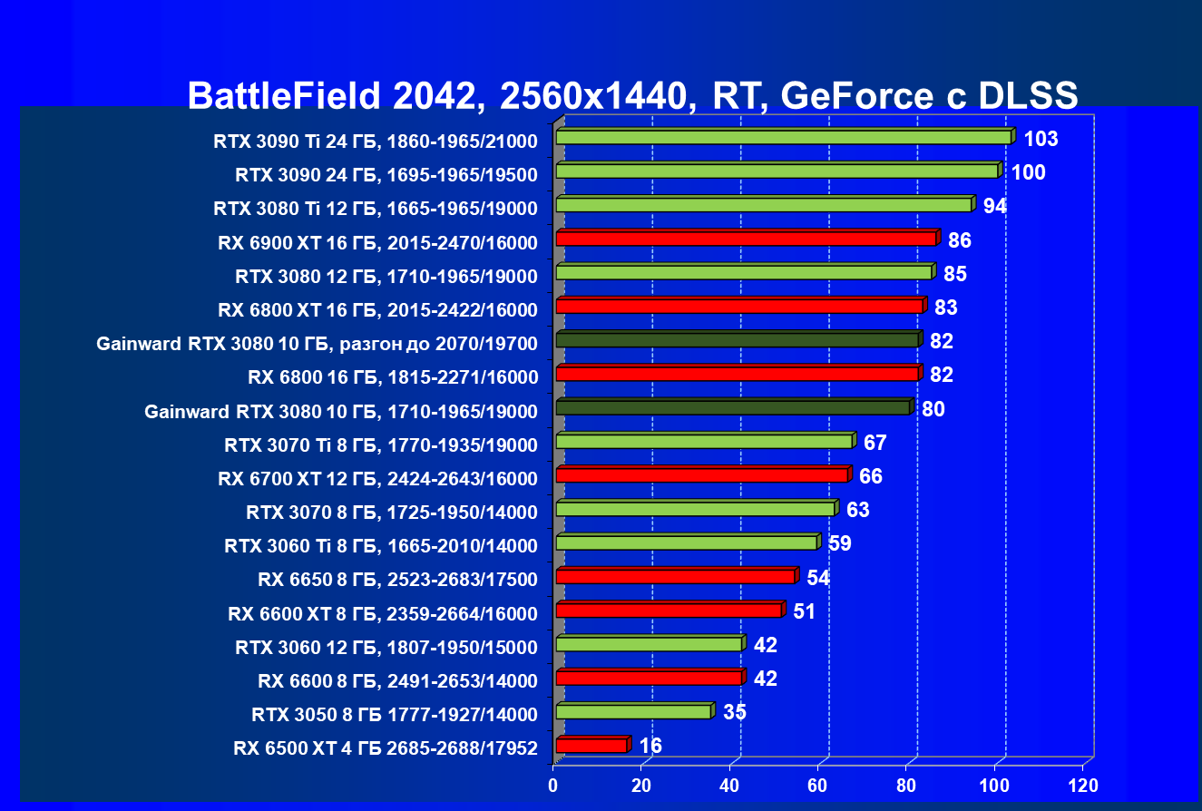 | 07 | Gainward RTX 3080 10 ГБ, 1710—1965/19000 | 610 | 103 | 59 000 |