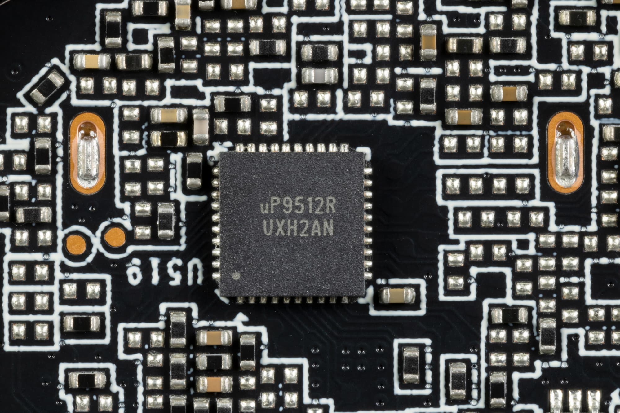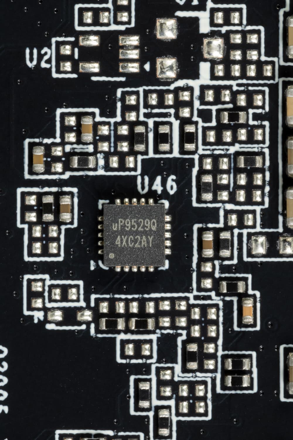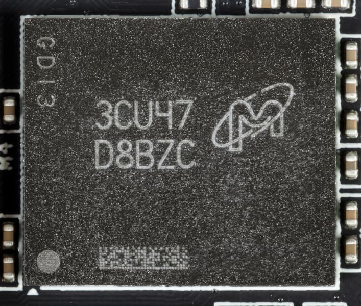 Питанием микросхем памяти управляет о ШИМ-контроллер uP9529Q (uPI Semiconductor), также расположенный на оборотной стороне PCB.