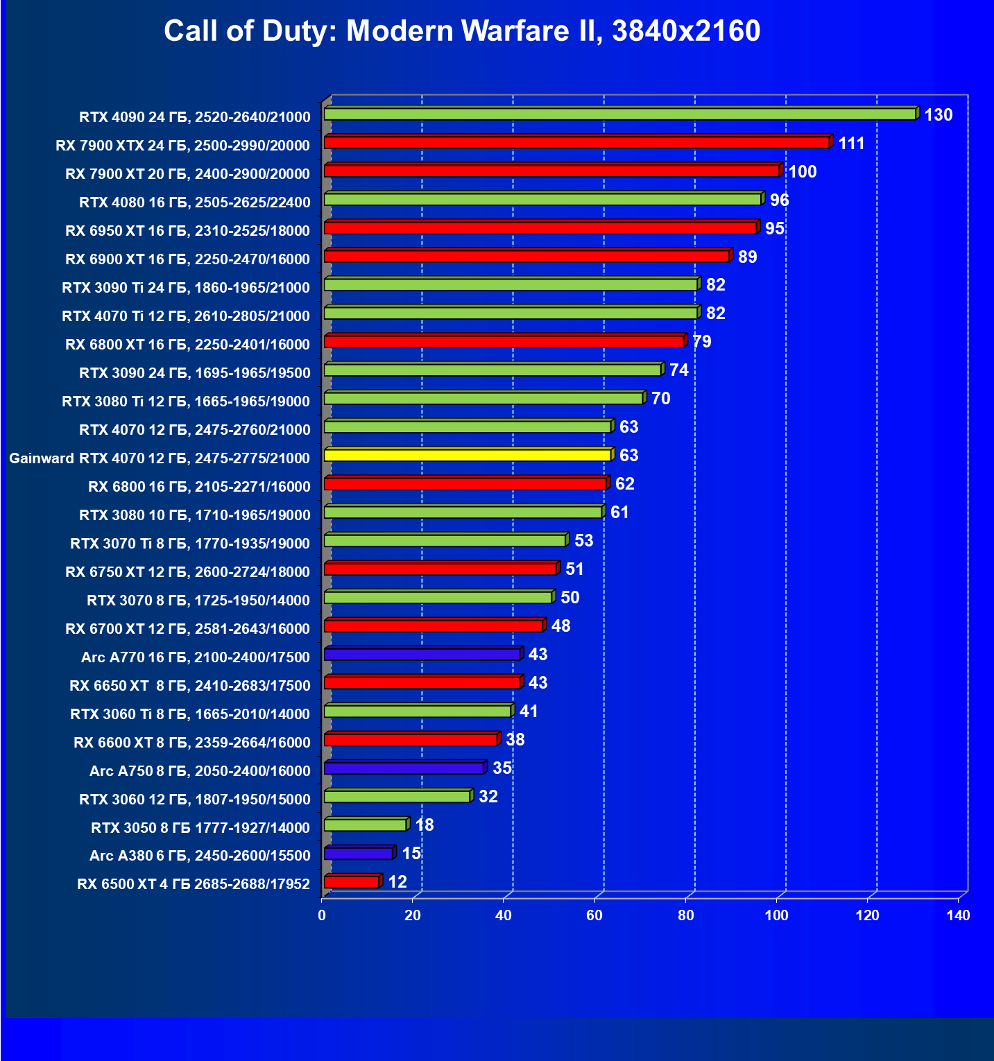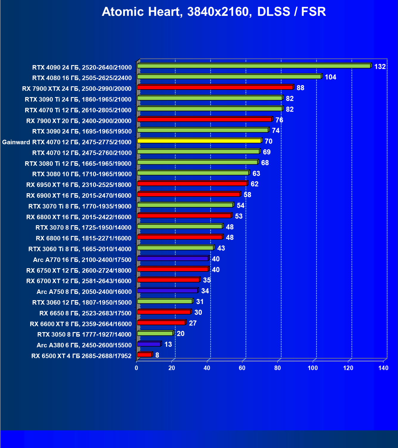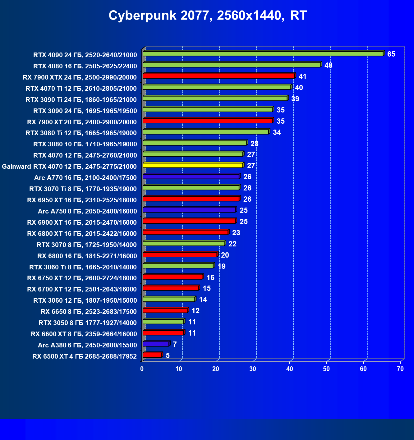 | 13 | RTX 4070 12 ГБ, 2475—2760/21000 | 454 | 76 | 60 000 |