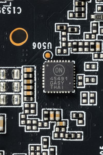 На тыльной стороне платы имеется контроллер NCP45491 (On Semiconductor), который отвечает за мониторинг карты (отслеживание напряжений и температуры).