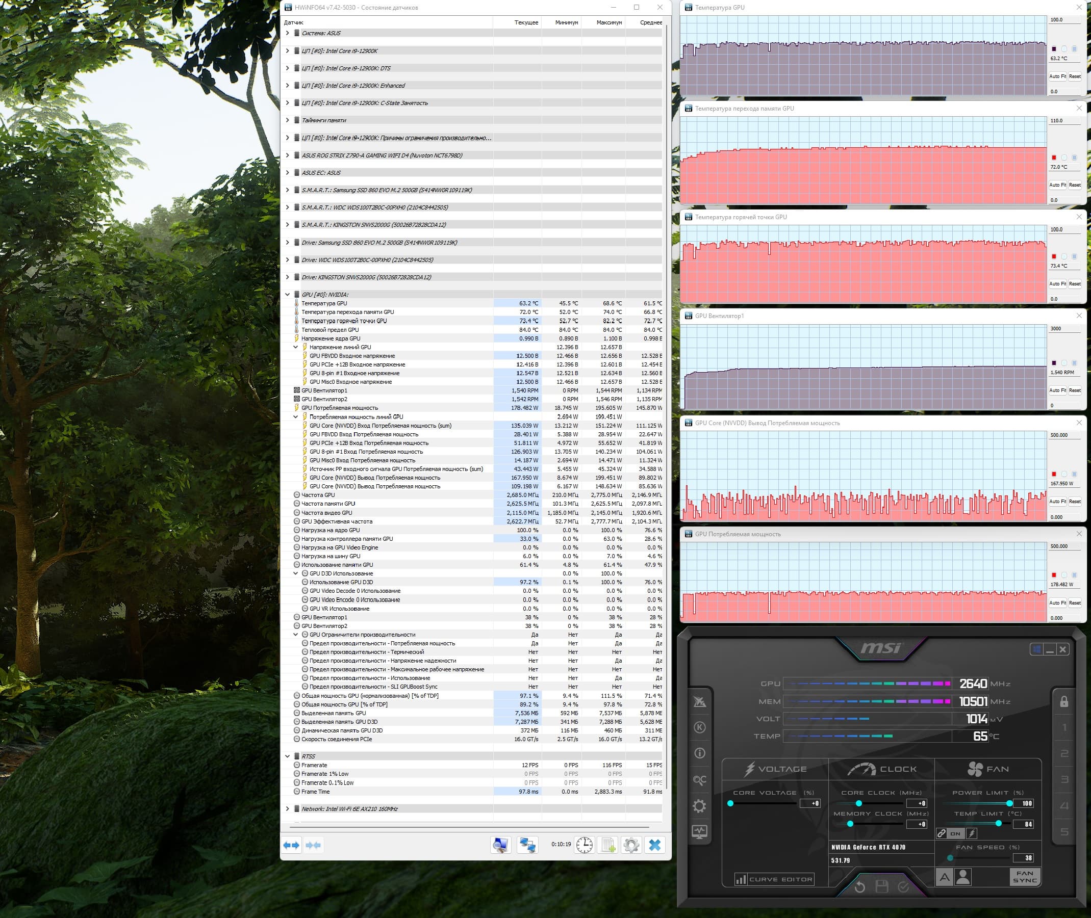 | 15 | RTX 4070 12 ГБ, 2475—2760/21000 | 76 | 454 | 60 000 |