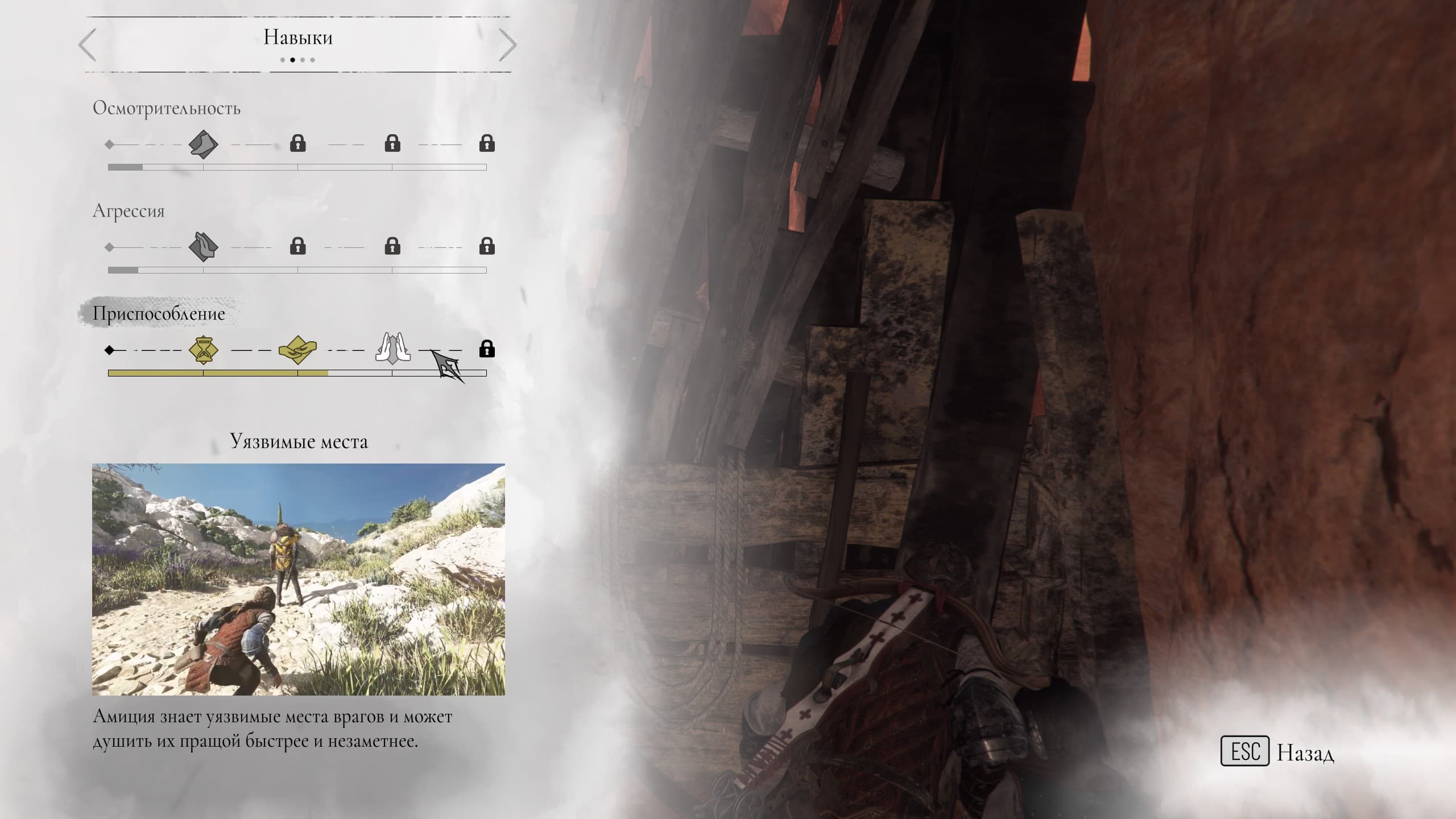 Также «прокачиваются» навыки, позволяющие перемещаться еще тише или иметь в своем арсенале больше горшочков с горючим. Горшки и алхимические примочки в игре можно встретить почти на каждом повороте, и не нужно бояться, что из-за крыс вам не удалось открыть труднодоступный ящик, – в скором времени на пути вам попадется другой. Вариант «прокачки» навыков таков, что мы либо совершенствуем свою скрытность и тихое перемещение, либо получаем более агрессивные навыки боёв. Снаряжение Амиции можно модернизировать, как и во многих других играх, на верстаках.