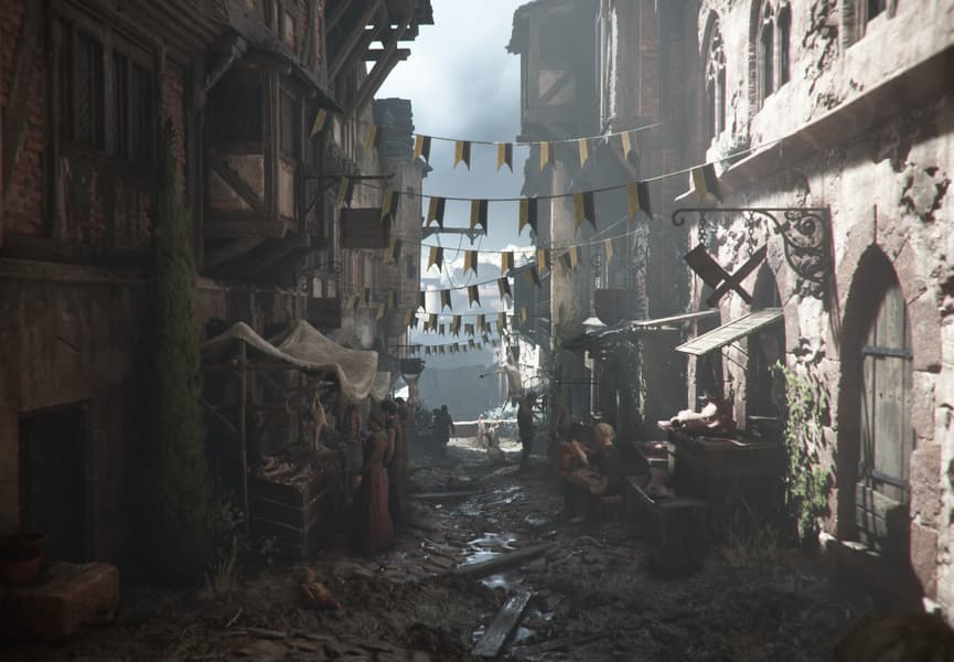 Игра наполнена средневековыми и великолепно прорисованными локациями. Можно уверенно считать, что это один из весомых плюсов игры. Ведь игра передает атмосферу средневековой чумы, которая особенно хорошо ощущается, когда мы перемещаемся по улицам города или находимся внутри крепостей или зданий. Обилие мертвых туш, будь то человек или корова, просто запредельное. Где присутствует много мертвечины, там не было бы лишним присутствие воронов или грифов, клюющих эти мертвые туши.