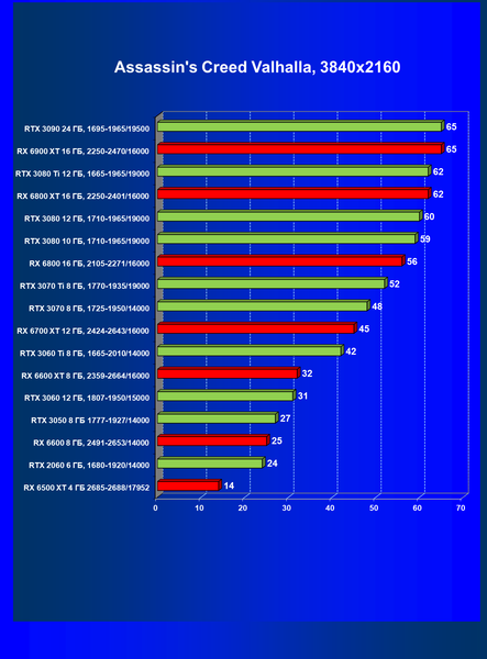 В игре Assassin’s Creed: Valhalla отсутствует поддержка таких современных технологий, как трассировка лучей и FSR с DLSS. Со сверхвысоким качеством графики в Full HD вполне можно поиграть даже на GeForce RTX 2060 и Radeon RX 6500 XT.