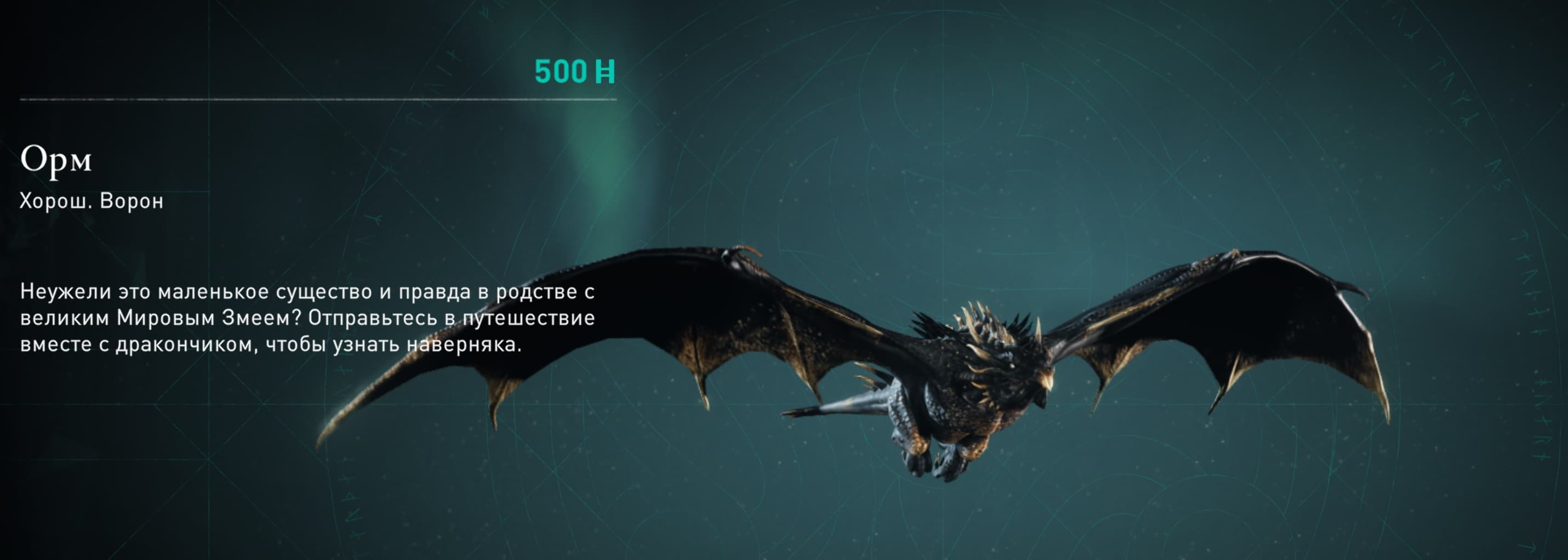 Ворон Сюнин автоматически дается вам в начале игры, без него плохо понятны местность и перемещение к поставленным на карте точкам. Для него можно купить новые скины в конюшне или в магазине Ubisoft. Ворон — легенда, он сопровождал викинга Эйвора во время экспансии викингов в IX веке.