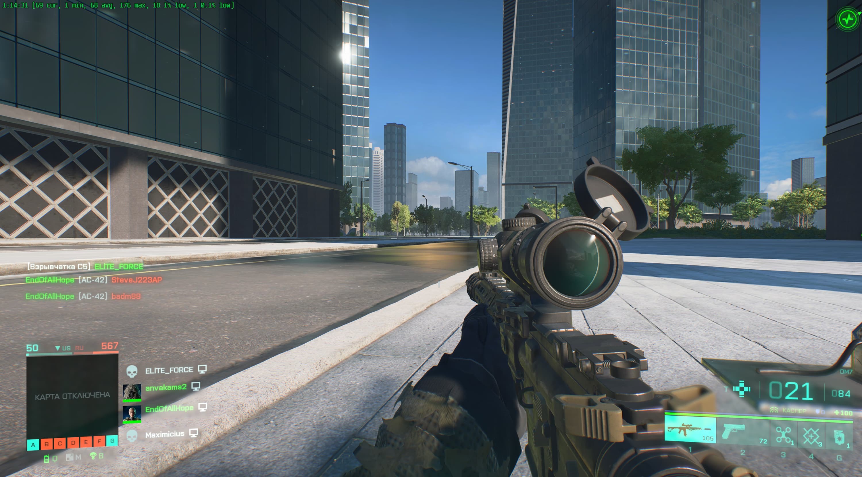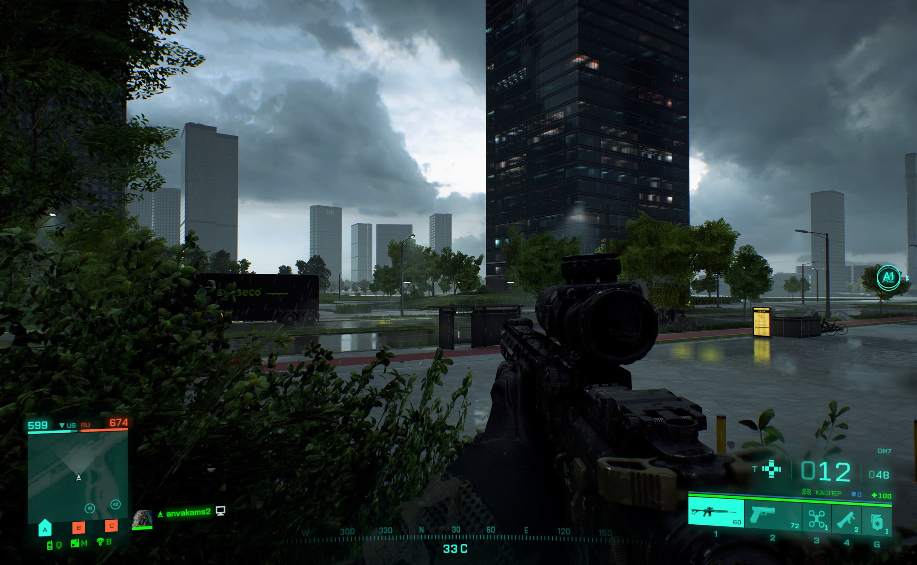 Хочу сразу отметить, что в Battlefield 2042 имеется поддержка трассировки лучей (RT), однако существенного изменения графики с включением этой технологии ожидать не стоит, поэтому играя на старых или младших видеокартах, вы теряете не так уж много. Игра хорошо оптимизирована, и в местах, где требуется детальная прорисовка для реалистичности, эта реалистичность вполне обеспечивается и без трассировки лучей: видны отражения в лужах, дым и огонь от техники и взрывов.