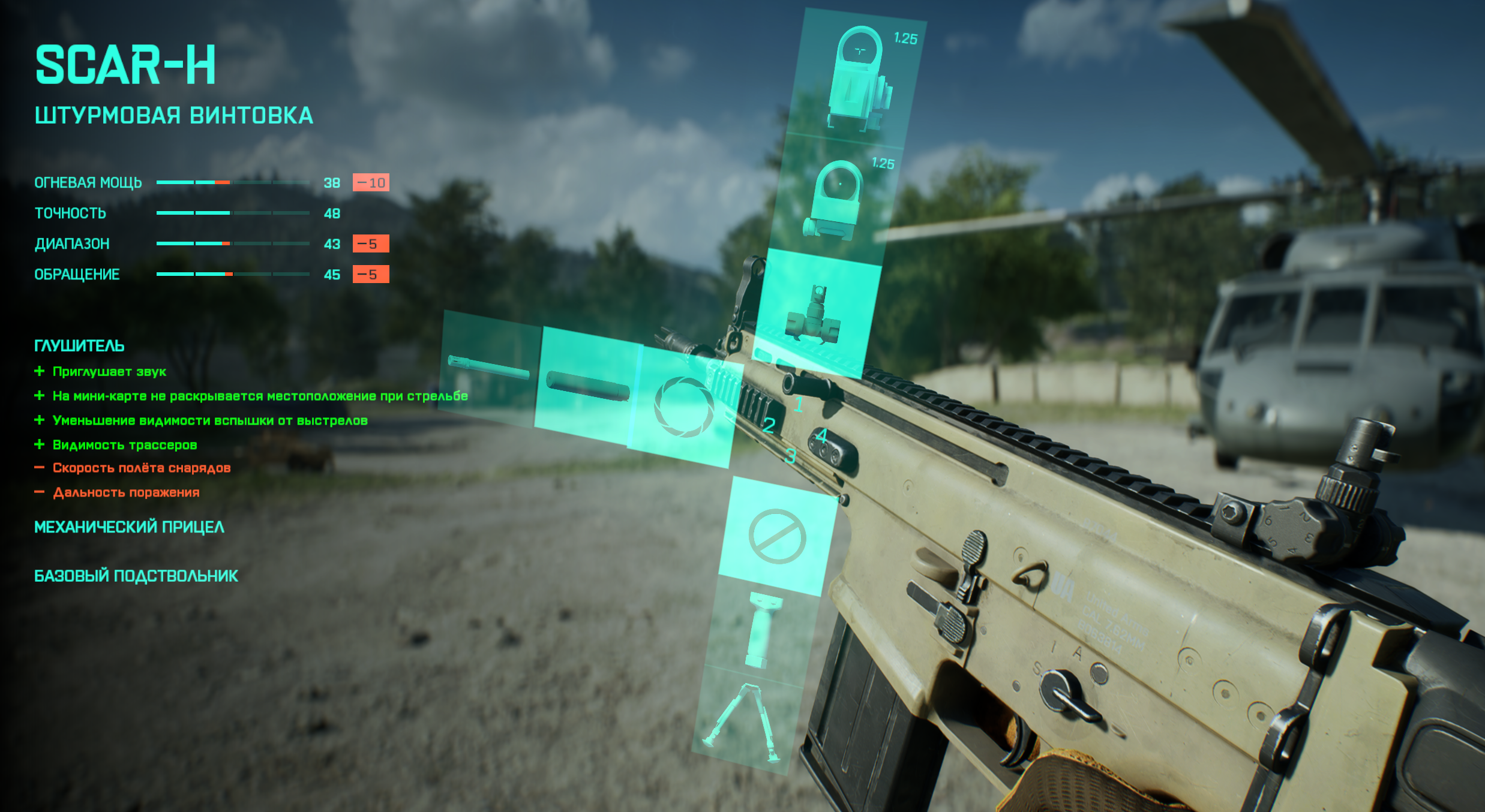 Выбранные улучшения для оружия (прицелы, магазины, насадки на ствол и подствольные обвесы) можно модернизировать в любой момент в зависимости от боевой ситуации, и это круто: не нужно бегать весь матч с одним и тем же снаряжением, если не успел до старта игры произвести изменения. Такие возможности неоднократно выручали при плотном огне в том месте, где вы нацелены «респауниться» с ближним прицелом (с коротким зумом приближения) — становится комфортнее противостоять в перестрелке на короткой дистанции. А если в ходе игры идут наступательные задачи, то в процессе перемещения не составит труда сменить прицел на усиленный зум, чтобы заполучить преимущество в наступлении, обнаруживая противников раньше, и задать жару тем, кто ожидает и «кемпится», ждет вашего приближения.
