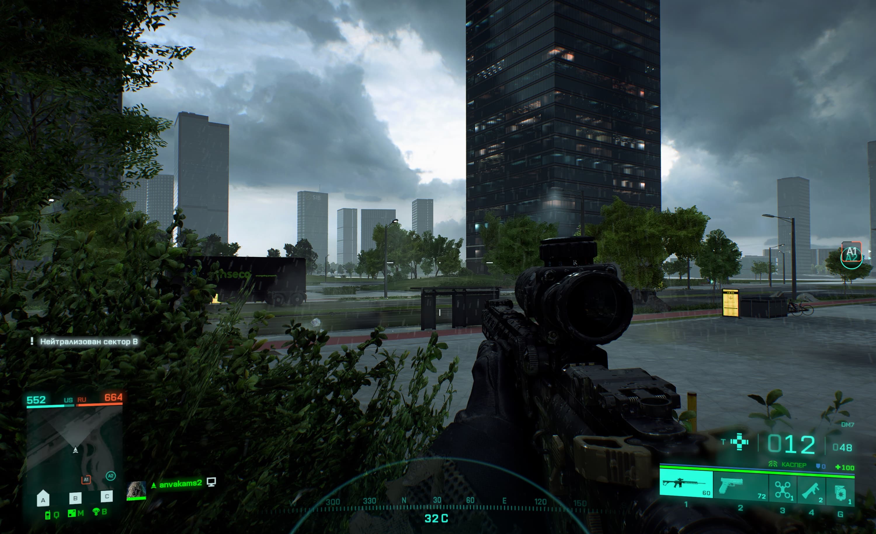 Хотите играть в разрешении 4К на настройках графики ультра? Для этого нужно приобрести видеокарту уровнем не ниже GeForce RTX 3070 либо Radeon RX 6800. Однако это справедливо, лишь если мы не используем трассировку лучей: в Battlefield 2042 эта технология весьма затратная, и в случае видеокарт Radeon наблюдается вообще полуторакратное падение FPS (у видеокарт GeForce это все-таки первые десятки процентов). Также игра поддерживает технологию Nvidia DLSS, и вот с ней уже можно получить отличный комфорт при включении RT и тех же максимальных настройках в 4K.