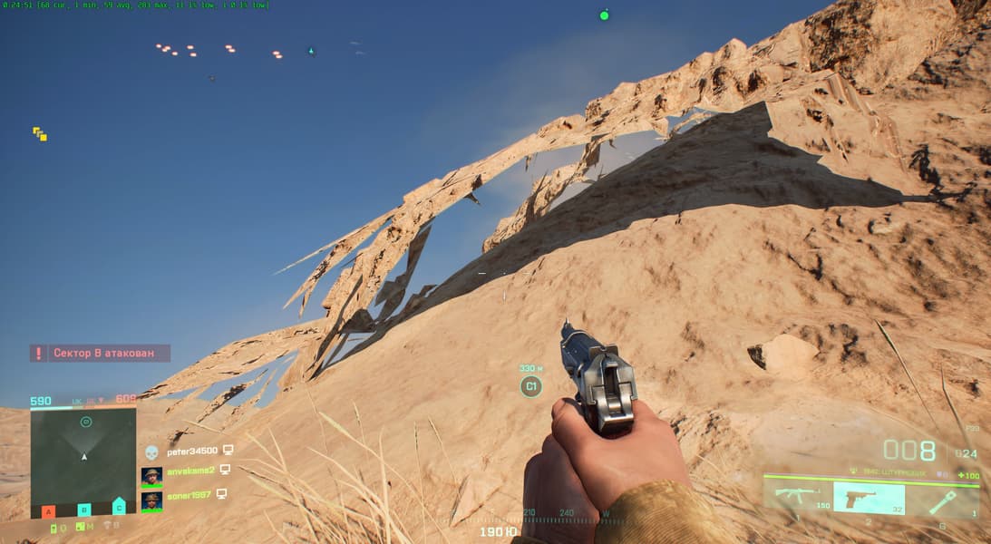 Если в данной игре сбивают с ног, то помощи ожидать не стоит, лучше добить себя и стартовать по новой (восстать как феникс из пепла), ведь другие игроки заинтересованы только в том, чтобы бегать и стрелять. При этом они осознают, что если сами окажутся в таком положении, то маловероятно, что их кто-то выручит и поможет продолжить бой. На скриншоте ситуация, когда мой персонаж погиб первым, но гранатомет выполнил поставленную задачу, и лежа за камнем, я сполна ощутил уничтожение танка с четырьмя противниками.