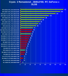 В приведенных ниже диаграммах показано, что даже такому мощному ускорителю в лице RTX 3090 Ti (флагману предыдущего поколения) уже становится «дурно» в разрешении 4K с трассировкой лучей, хотя FPS еще вполне приемлемый. Разумеется, не забываем, что в игре есть возможность включить технологию DLSS, которая позволит получить уже комфортную скорость кадров одновременно с включенной технологией RT.