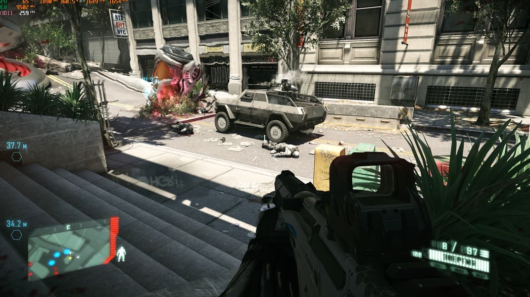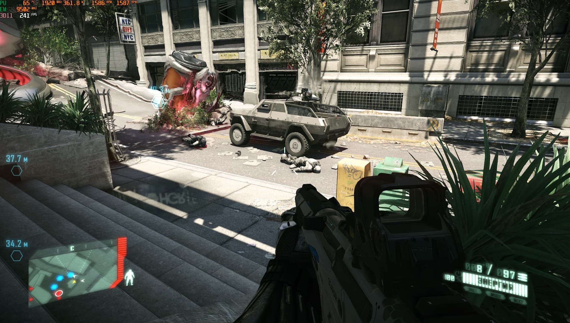 Нью-Йорк выглядит по-особенному уникально: ведь необычное зрелище — наблюдать город, где большинство зданий не просто развалены, а вдобавок еще и заросли растительностью, и конкретно в Crysis 2 Remastered это выглядит мощнее фантастического блокбастера.