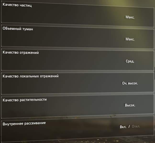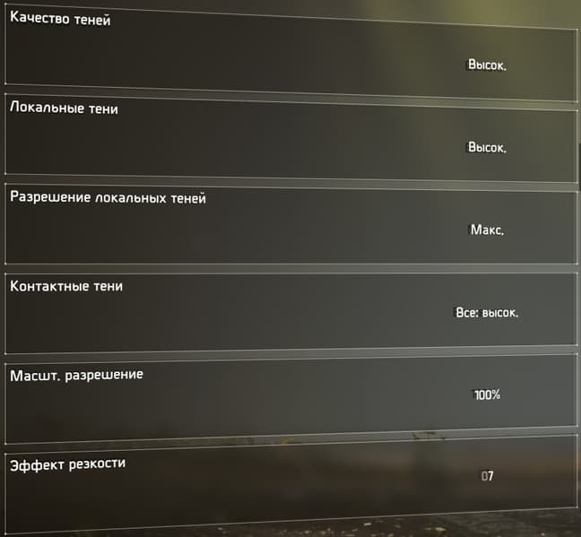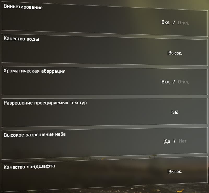 В дополнительном меню качества графики предлагается просто огромное количество настроек: Shadows, Spot Shadows, Spot Shadow Resolution, Contact Shadows, Particle Detail, Volumetric Fog, Reflections, Local Reflections, Vegetation, Object Detail, Ambient Occlusion, Extra Streaming Distance, Water, Terrain, Projected Texture Resolution, Sharpening, Chromatic Aberration, Vignette, High Resolution Sky Textures, Depth of Field, Parallax Mapping и Sub-surface Scattering. Не все эти термины переведены на русский язык корректно, на наш взгляд, но разработчики хотя бы попробовали дать краткое описание каждой из настроек, правда без визуальной демонстрации, что несколько осложняет настройку для неопытных пользователей.