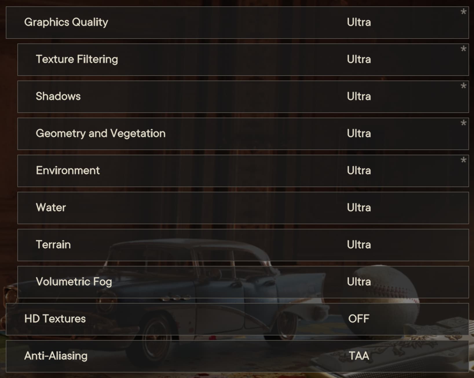 Большинство графических настроек вызывает крайне малые отличия в качестве и производительности, чаще всего это 1%-5% разницы. Но изменение сразу нескольких помогает получить больший прирост, а действительно требовательных отдельных графических настроек в игре совсем мало. Рассмотрим имеющиеся настройки: