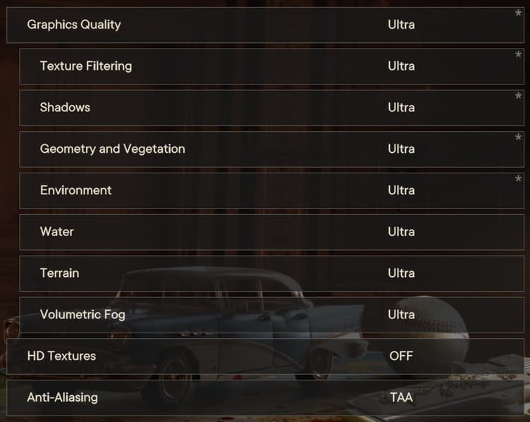 Графические настройки в игре Far Cry 6 изменяются в игровом меню, которое можно вызвать в том числе и во время игрового процесса. Изменение параметров, кроме включения HD-текстур, приводится в действие сразу же и не требует перезапуска игры, поэтому настраивать качество рендеринга в рассматриваемой игре весьма удобно, так как можно сразу же оценить внесенные изменения визуально. В меню игры присутствует достаточно большое количество графических настроек, изменяя которые, можно получить требуемое качество картинки при соответствующей производительности.