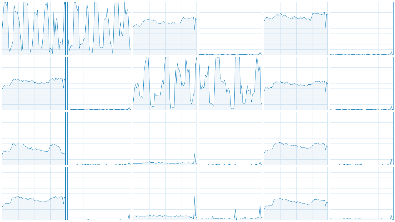 При игре ядра CPU не загружены работой равномерно, и производительность мощных видеокарт часто упирается в скорость одного-двух ядер CPU. Игра Far Cry 6, использующая DirectX 12, недостаточно эффективно использует возможности многопоточных CPU, возможности всех вычислительных потоков просто не используются, и игре подойдут даже быстрые четырехъядерные процессоры. Вот так выглядит график загрузки тестового процессора: