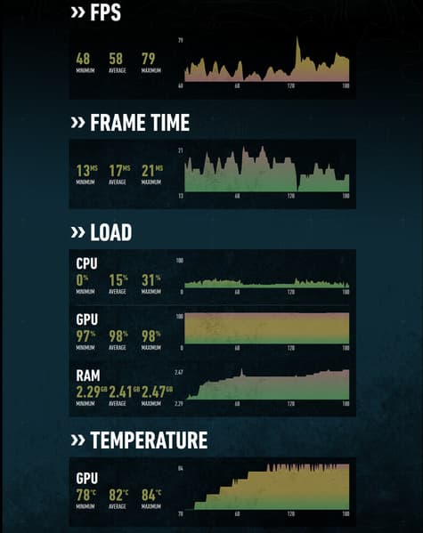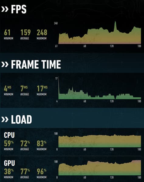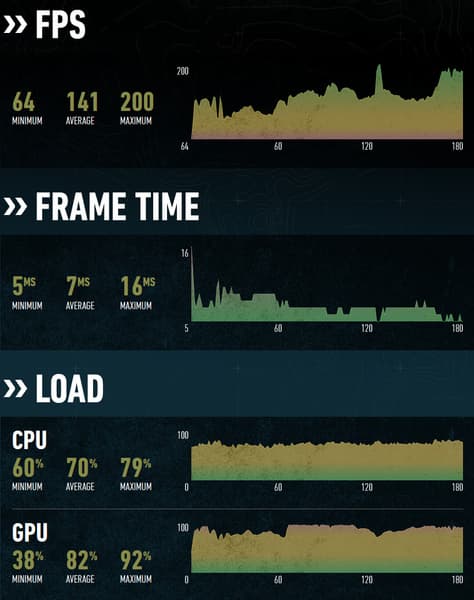 По довольно удобным графикам явно видно преимущество Vulkan: повысилась как средняя частота кадров, так и минимальное и максимальное значения. Это же видно и по загрузке CPU и GPU. Разница по производительности пусть и не слишком велика, но она точно есть — почти 13% прибавки по средней частоте кадров.