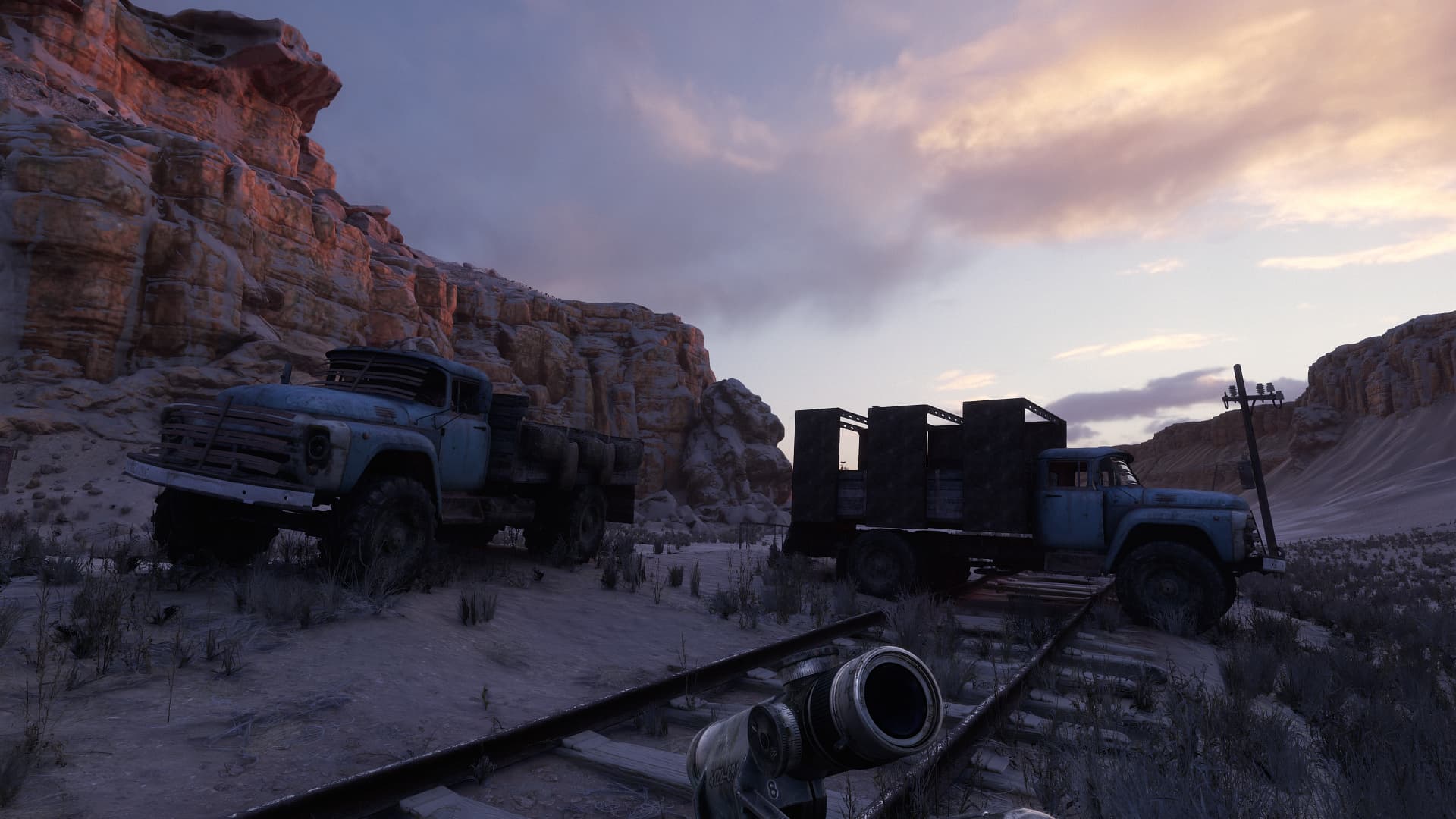 Для нас же главное в том, что в игре встречаются очень атмосферные локации со сменой времен года, времени суток и погоды. Визуальная часть Metro Exodus очень хороша! Все отлично проработано, локации в основном высокодетализированные и разнообразные, погода и время дня меняются в динамике, оружие со временем загрязняется, используется множество систем частиц (снег, пыль, искры и т. д.) с расчетом освещения и физического взаимодействия, и все это вместе выглядит просто отлично. Для увеличения детализации таких объектов, как колеса, бочки, вентили и т. д., а также для объемного отображения кирпичных стен, камней и других подобных материалов, активно используется тесселяция.