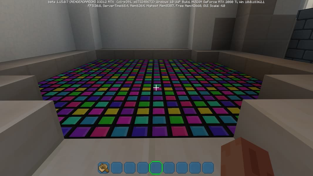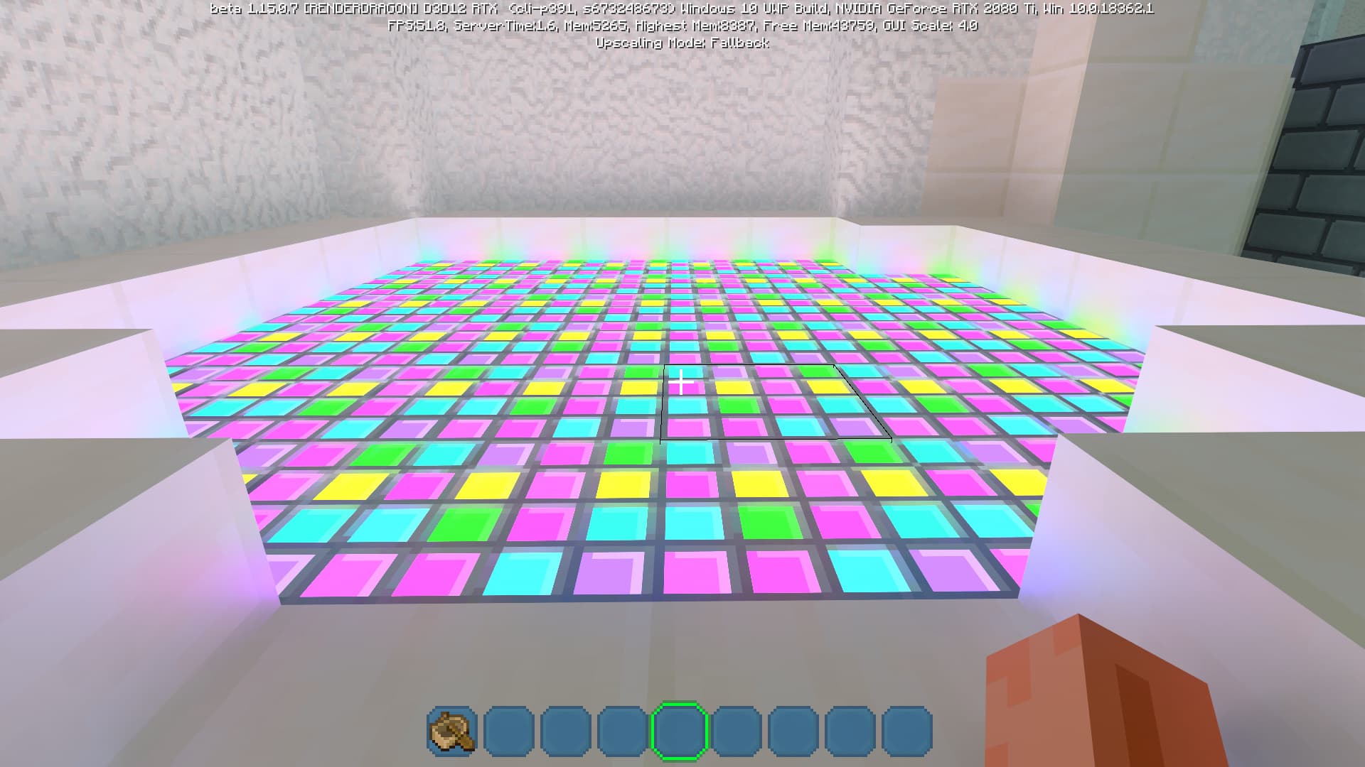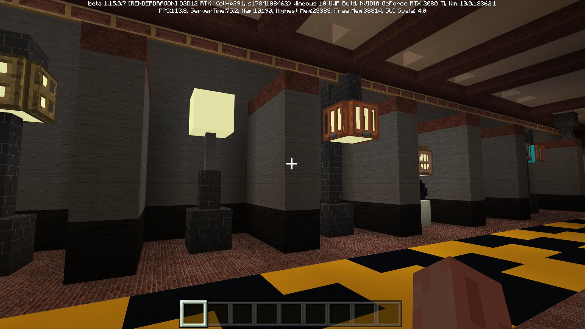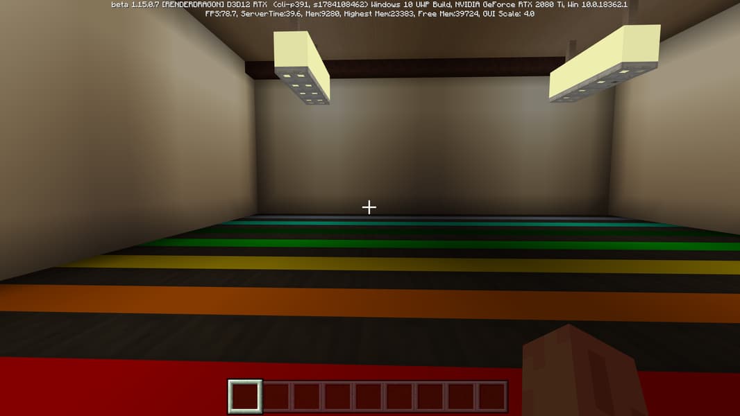 Специально для бета-версии Minecraft RTX компания Nvidia выпустила оптимизированный драйвер версии 445.87, который мы и использовали при ознакомлении с игрой. В минимальных системных требованиях трассированной версии игры указана модель GeForce RTX 2060, так как это самый слабый GPU с аппаратной поддержкой DXR API и наличием тензорных ядер, необходимых для работы DLSS 2.0. Так как полная трассировка пути очень требовательна, то запуск трассированной версии на решениях семейства Pascal невозможен, поскольку даже мощная GeForce GTX 1080 Ti не даст необходимой производительности при включенной трассировке.