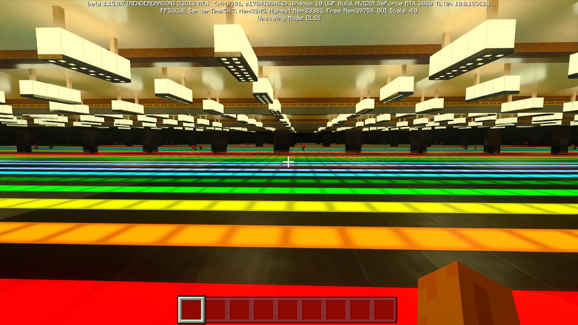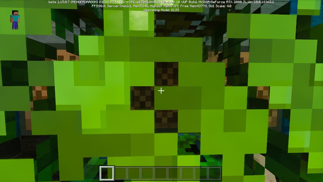 DLSS 2.0 предлагает три режима качества: Quality, Balanced и Performance. Некоторые из них имеют свои ограничения, но режим Performance можно использовать вплоть до четырехкратного увеличения разрешения! Конкретно в бета-версии Minecraft RTX технология DLSS 2.0 включается при помощи пункта «Upscaling» в меню продвинутых графических настроек и включена по умолчанию.