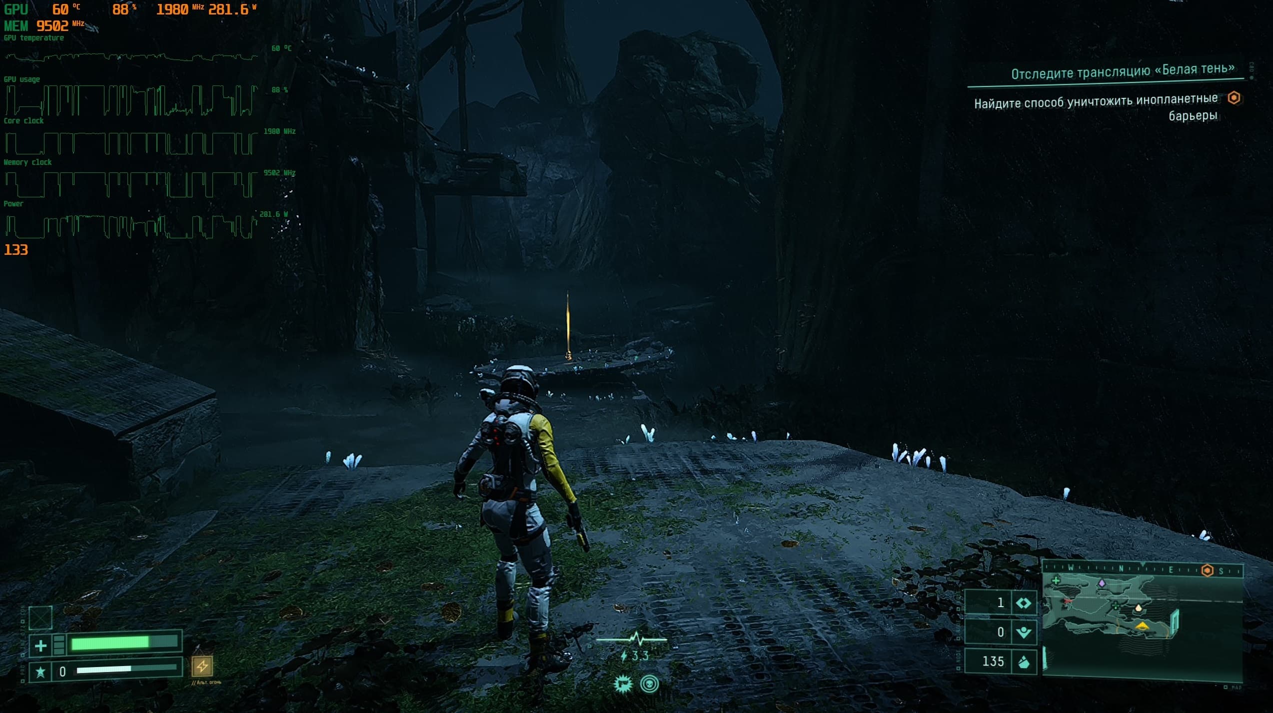 Без включения DLSS производительность в игре на видеокарте GeForce RTX 3080 (10 ГБ) в разрешении 3840×2160 была около 48-50 FPS.