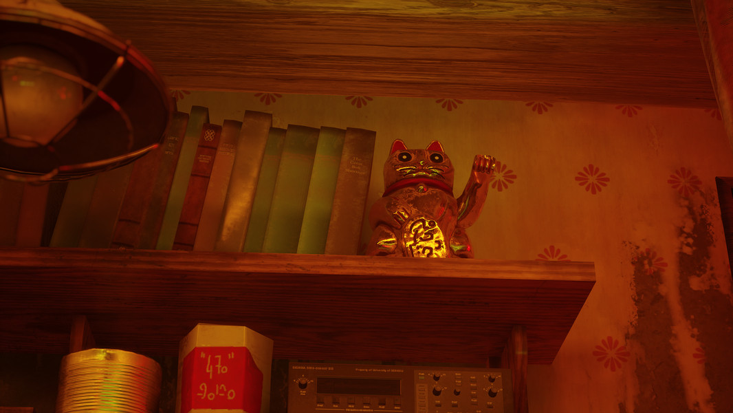 В игре так же часто, как и картины с морем и коровами, мы будем встречать на своем кошачьем пути статуэтки в виде талисмана «манэки-нэко», который возник только во второй половине XIX века, безусловно игра кошачья, и талисманы тут должны быть соответствующие. Их появление в игре, как и легендах, повествует о чем-то хорошем в будущем, поэтому отчасти и роботы нас не так сильно боялись, и наш рыжий Котейка принес удачу обитателям подземного города.