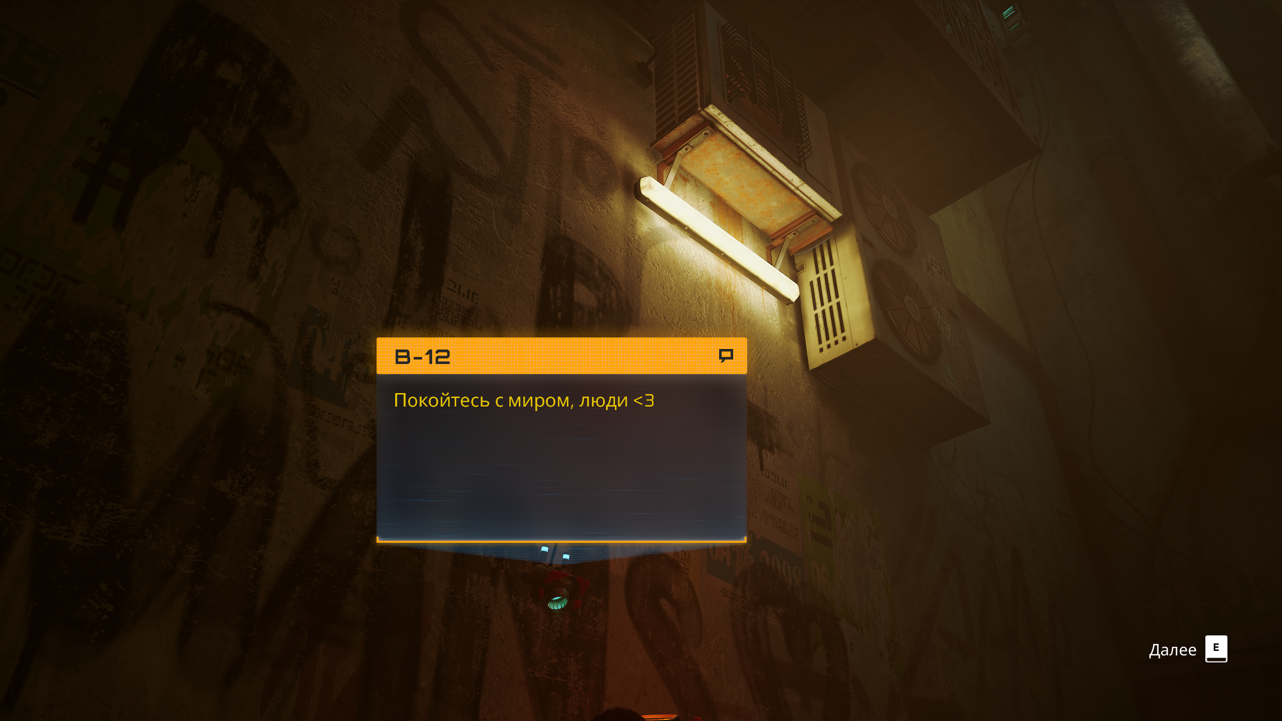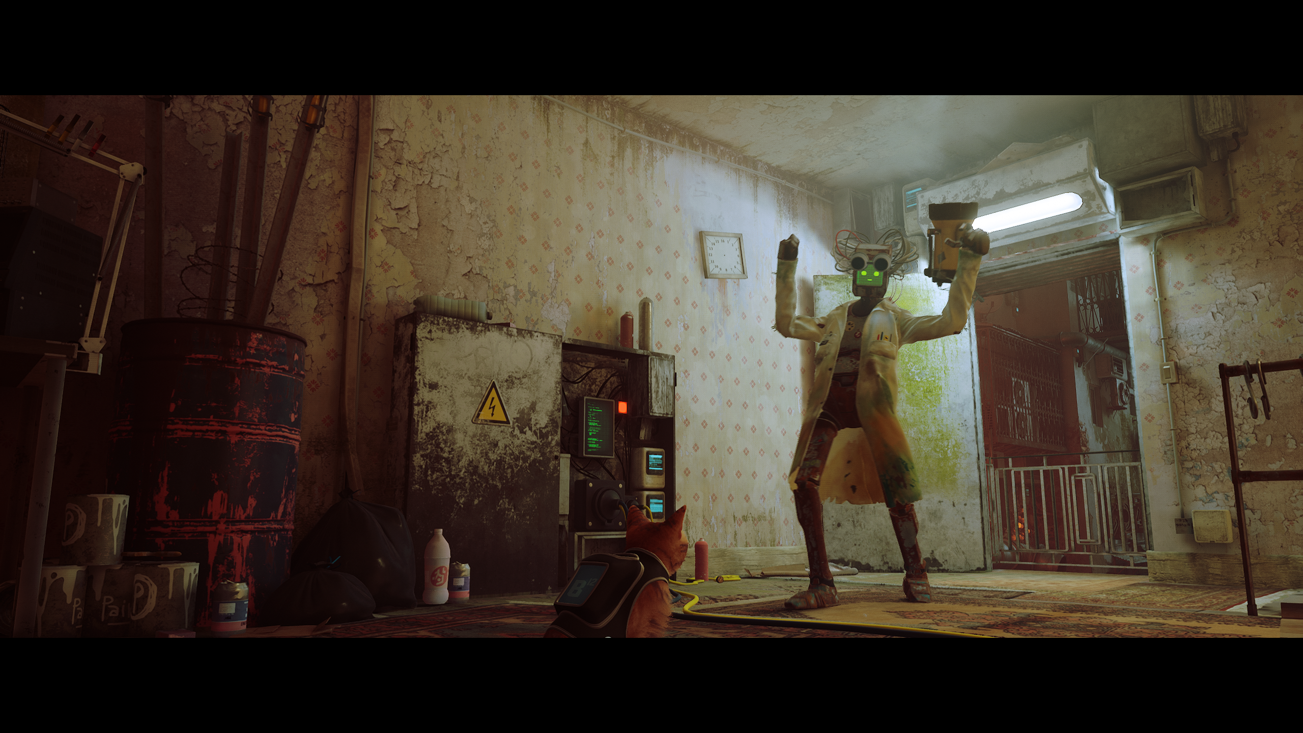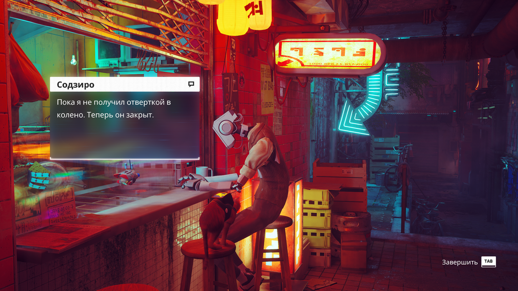 Роботы переняли все повадки людей, это восхищает, такого явно не ожидаешь в игре про котейку и роботов. Уже круто встретить обычные бары и магазины в городе, где выживали люди, и теперь существуют роботы. Бежишь по сюжету выполнения заданий, и из окна робот зазывает тебя «потусить» без какого-либо «фейсконтроля», и к удивлению лексикон такое знает, нет бы позвать активно подвигаться, а зовут именно «потусить». В этом «робоклубе» мы увидим не только соответствующее освещение, но и диджеев.
