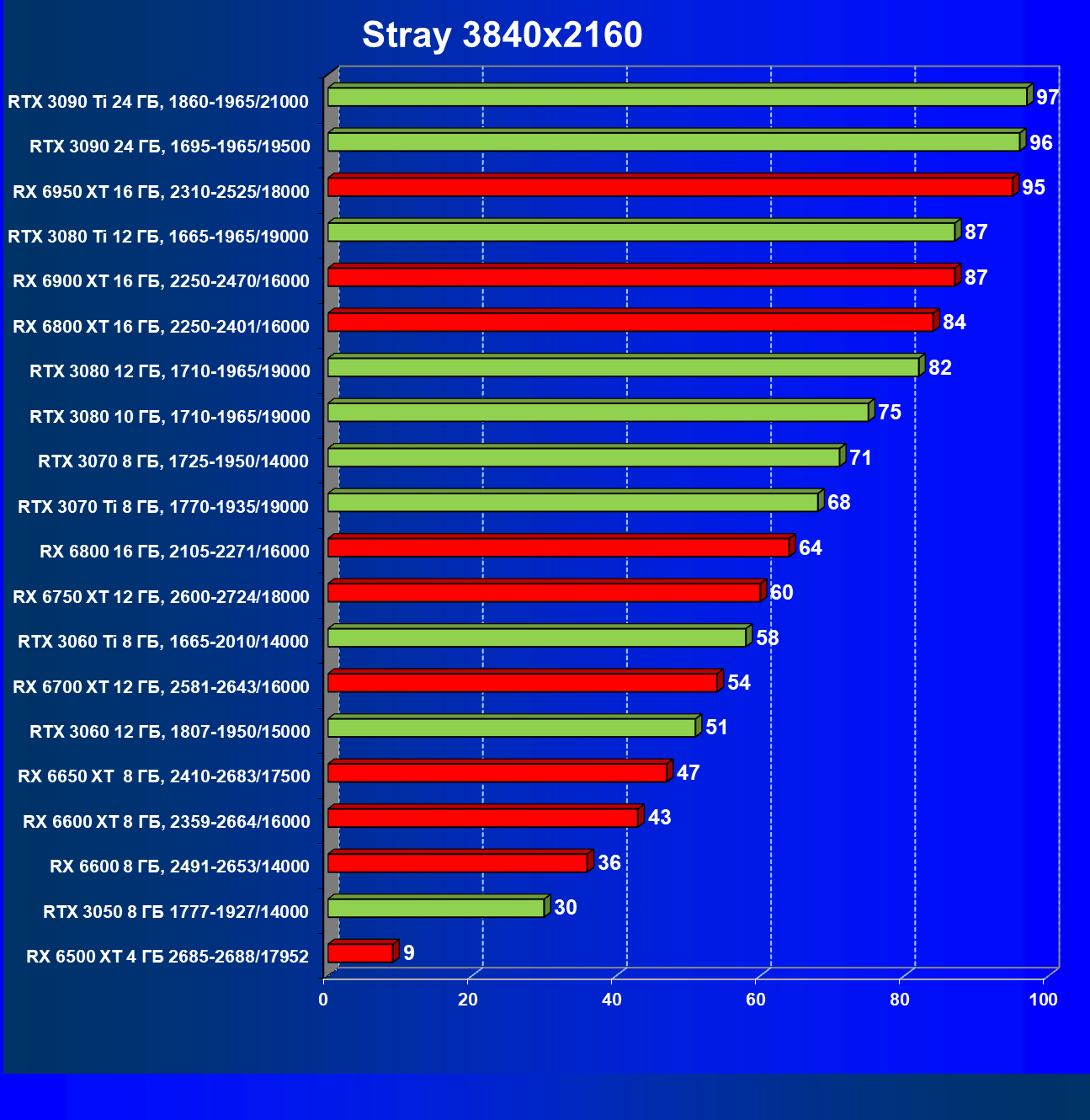 Хотите играть в разрешении 4К на тех же максимальных настройках? Для этого нужно приобрести видеокарту не ниже GeForce RTX 3060 Ti либо Radeon RX 6750 XT.