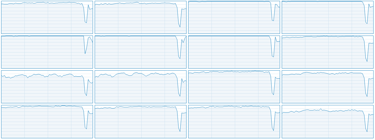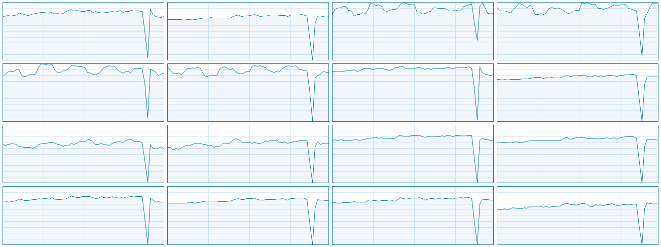 Общая загрузка ядер CPU в процессе тестирования и при средних и максимальных настройках в разрешении 4K на GeForce RTX 2080 Ti в среднем составила порядка 40%-50% с пиками от 20% до 70%, но и GPU при этом почти не простаивает. Загрузка графического процессора почти всегда составляла 97%-98% от его возможностей, даже при средних настройках. А вот как выглядит график загрузки процессора при игровом процессе в Full HD-разрешении при ультра-настройках и когда размер отряда выставлен на максимум: