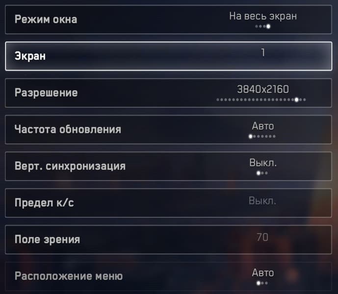 Меню графических настроек в игре одно, в нем можно выбрать используемый GPU, монитор, его разрешение с различным соотношением сторон, а не только типичные 16:9, частоту обновления и режим вывода (оконный или полноэкранный), вместе с углом обзора FOV (от 70 до 110 градусов), а еще можно изменять расположение интерфейса игры при использовании нескольких мониторов.