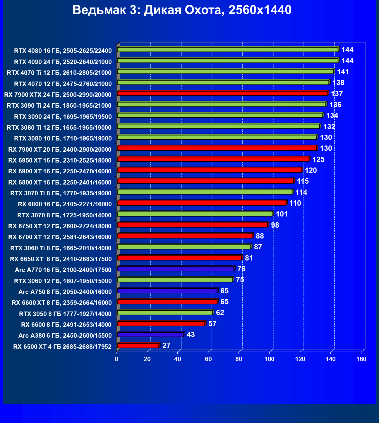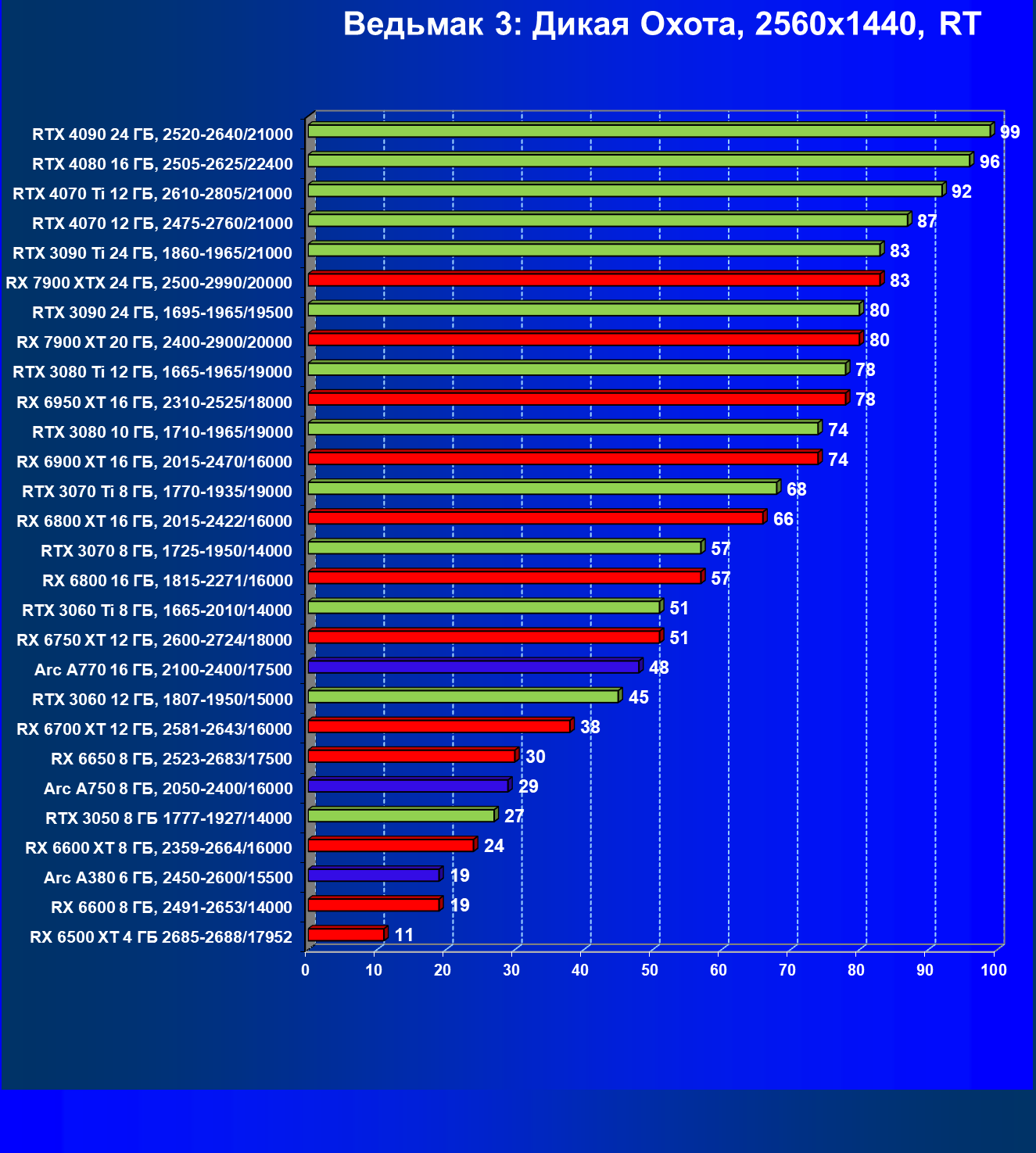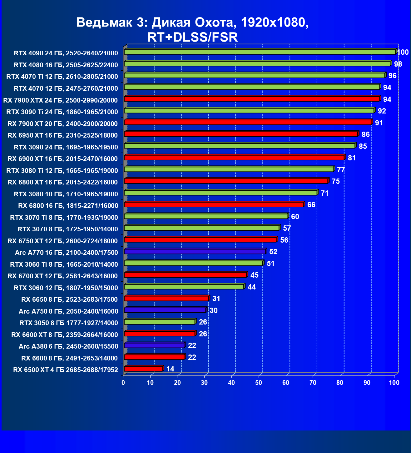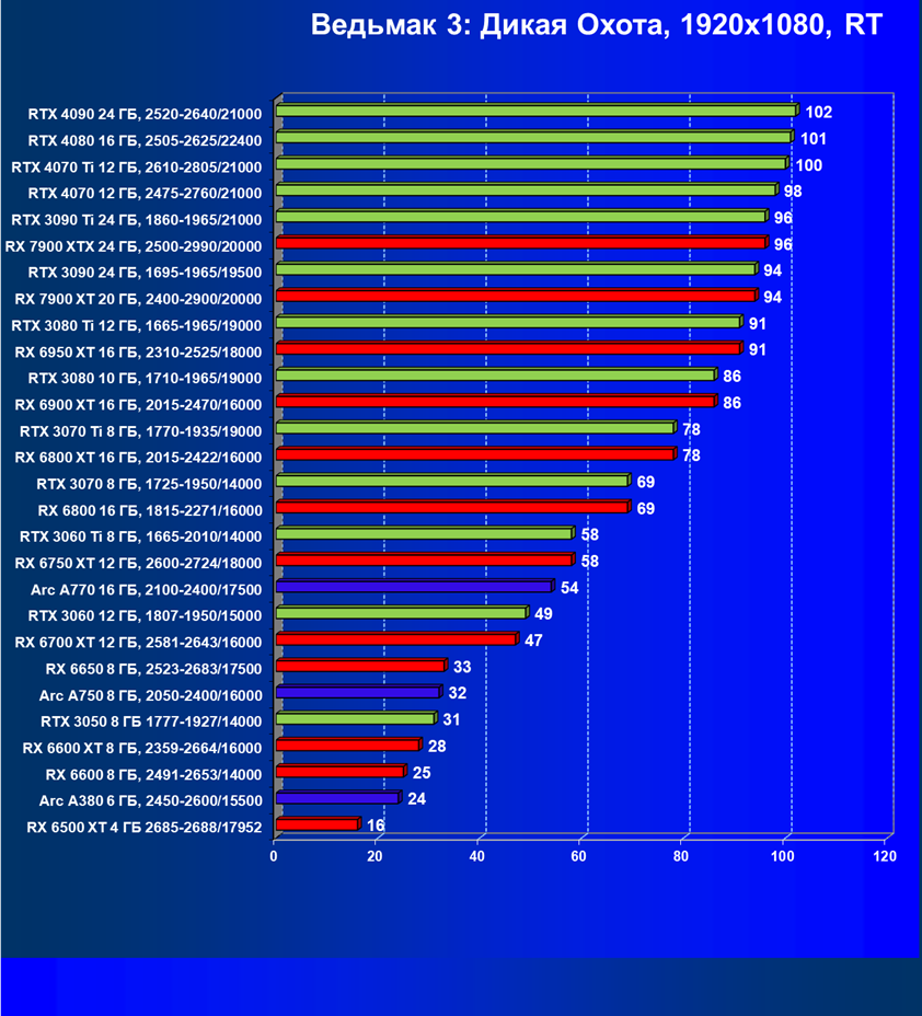 В разрешении Full HD при включении трассировки лучей без DLSS и FSR нужно вооружиться GeForce RTX 3060 Ti, Radeon RX 6750 XT или Intel Arc 770. В разрешении 2.5K достаточную производительность обеспечат GeForce RTX 3070 и Radeon RX 6800. В разрешении 4K для комфорта потребуется GeForce RTX 3070 Ti, но лучше GeForce RTX 3080 и выше, а также Radeon RX 6800 XT и выше.