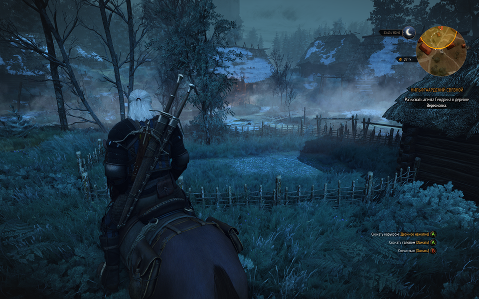 Сначала осваиваешься в первой деревеньке, устраняешь их страхи и угрозы или помогаешь в других вопросах и печалях, потом в дальнейшем наш визит будет в том или ином поселении им в радость, и это заметно ощущается в выкрикиваемых добрых выражениях местных жителей. Но по-началу они холодные, и наше присутствие только напрягает и настораживает жителей. Со временем, как и в любой другой игре, где большие локации для путешествия, мы станем чувствовать себя как дома, и даже настигнет ощущение местного шерифа полиции, который всем и везде помогает, зная, что и где в определенной местности можно встретить и как туда проще и удобнее добраться. По мере нашего путешествия мы уничтожаем надоедливых негодяев, и бывает, что выпадает нужный «лут» не только для Геральта, но для нашей лошадки.