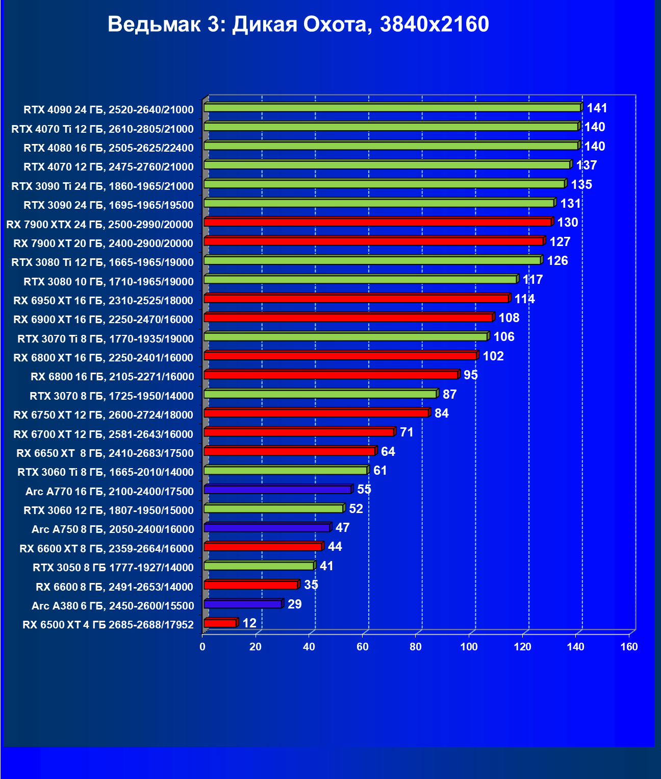 Если рассматривать самое популярное разрешение Full HD, то для того, чтобы играть на максимальных настройках графики без RT/DLSS/FSR/XeSS, нужно вооружиться GeForce RTX 3050, Radeon RX 6600 или Intel Arc 380. В разрешении 2.5K достаточную производительность обеспечат GeForce RTX 3060, Radeon RX 6600 XT и Intel Arc 750. В разрешении 4K для комфорта потребуется GeForce RTX 4070 Ti и Radeon RX 7900 XT, и то лучше с включением технологий масштабирования. Для гарантированного комфорта в каждом из разрешений лучше использовать варианты уровнем выше названных, но в целом игра не сильно динамичная, и в большинстве случаев вполне хватает 50 FPS (но не всегда).