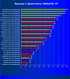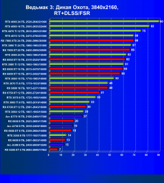 Стоит отметить очень странную совместную работу RT и DLSS/FSR, когда включение указанных технологий масштабирования может не только не прибавлять FPS, но даже снижать производительность. Возможно, причина в недоработках в самой игре, поскольку такое встречается на картах и Nvidia, и AMD. Поэтому в целом в разрешении Full HD при включении трассировки лучей и DLSS/FSR нужно вооружиться GeForce RTX 3070, Radeon RX 6750 XT и Intel Arc 770. В разрешении 2.5K достаточную производительность обеспечат GeForce RTX 3070 Ti и Radeon RX 6800 XT. В разрешении 4K для комфорта потребуется GeForce RTX 3080 Ti и выше, а также Radeon RX 6800 XT и выше.