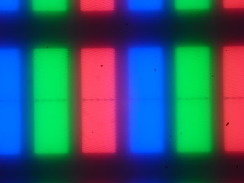 Изображение структуры пикселей из-за матовой поверхности слегка размыто, но характерную для IPS структуру распознать можно (черные точки — это пыль на матрице фотоаппарата):