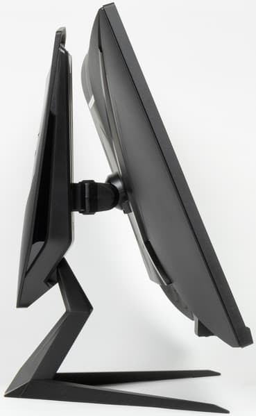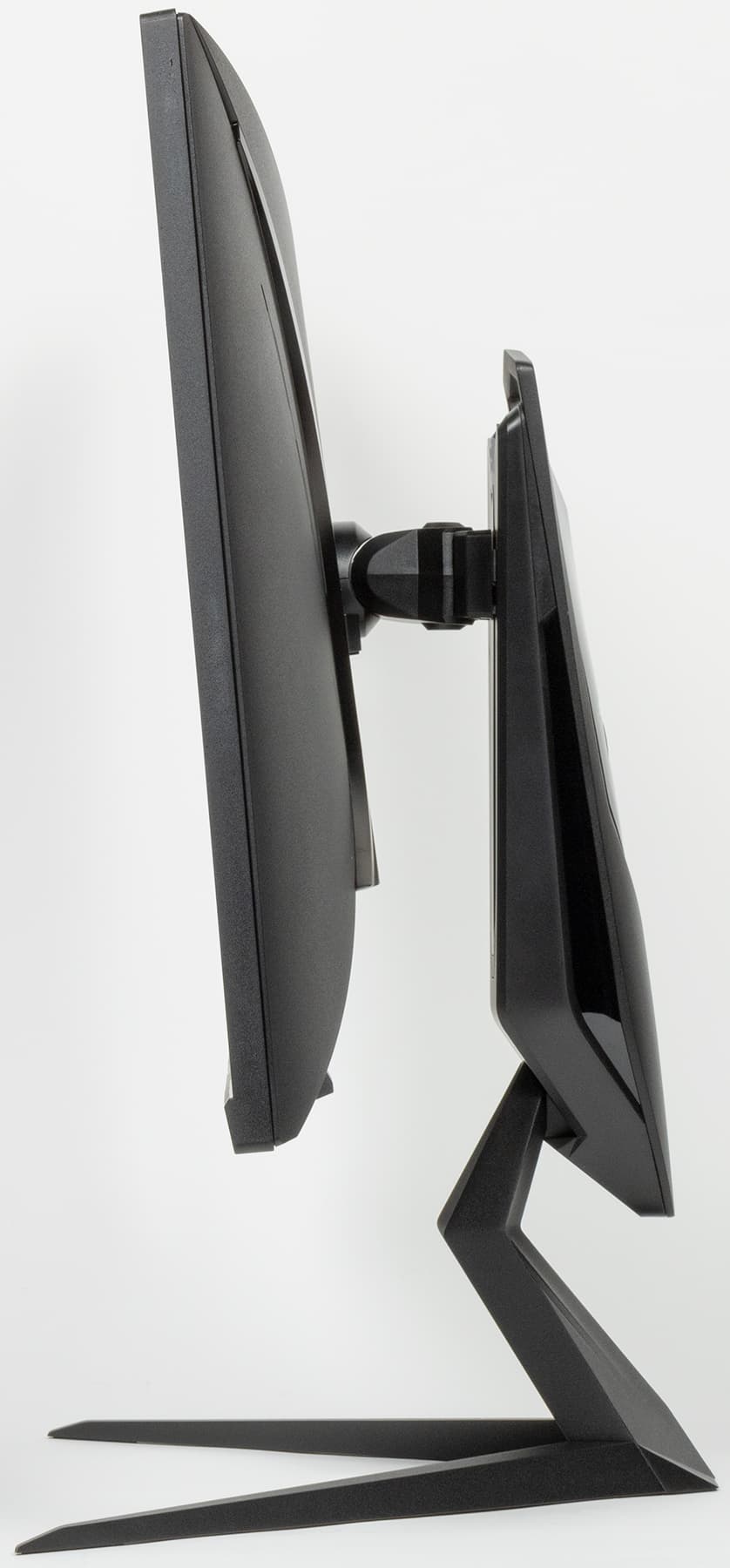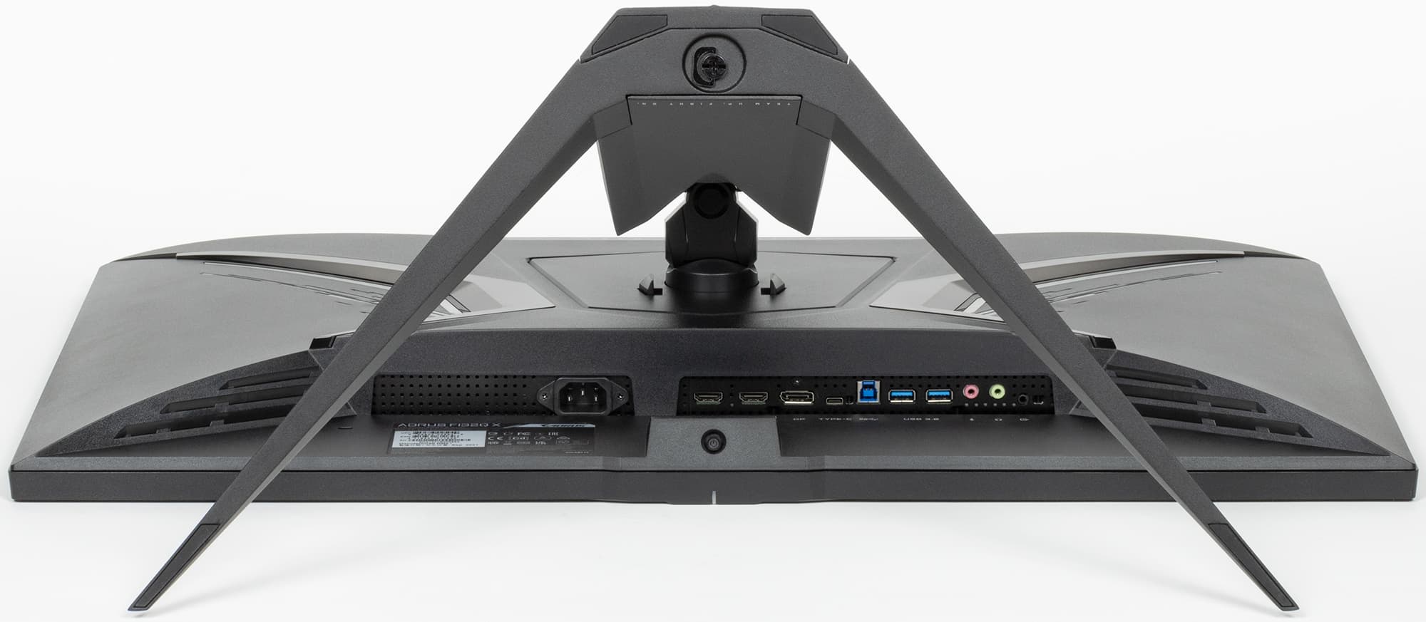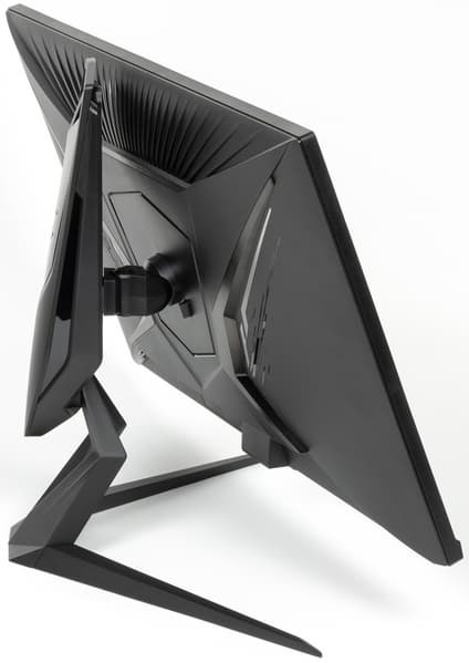 В целом дизайн умеренно игровой, поэтому с точки зрения внешнего вида монитор можно считать универсальным. Панели монитора и кожухи подставки изготовлены из черного пластика в основном с просто матовой поверхностью. Несущие элементы подставки изготовлены из алюминиевого сплава и имеют стойкое матовое черное покрытие.